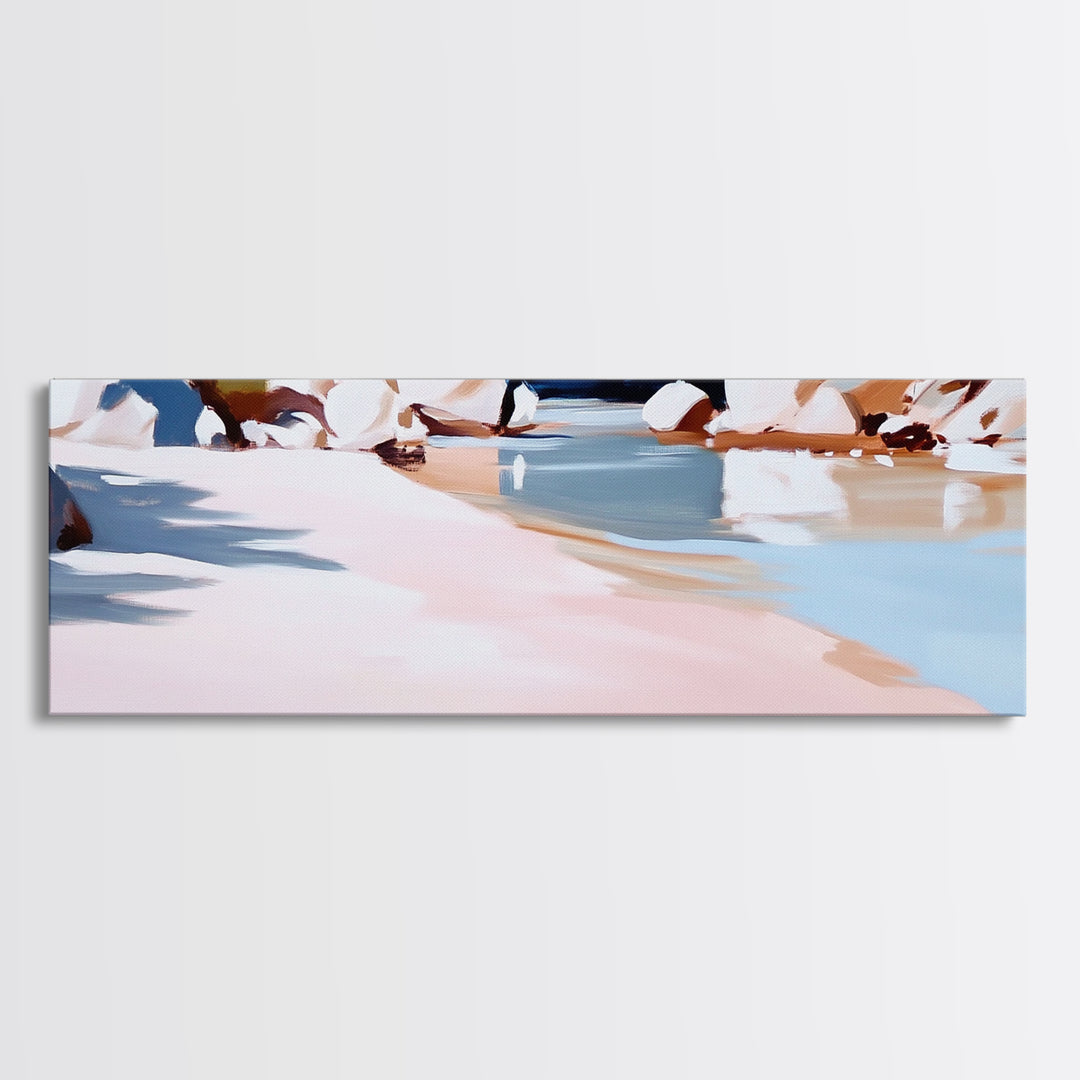 Riverbank, Water Reflections, Tranquil Scene, Framed Canvas Print, Serene Wall Art, Zen Home Decor, Neutral Landscape, Modern