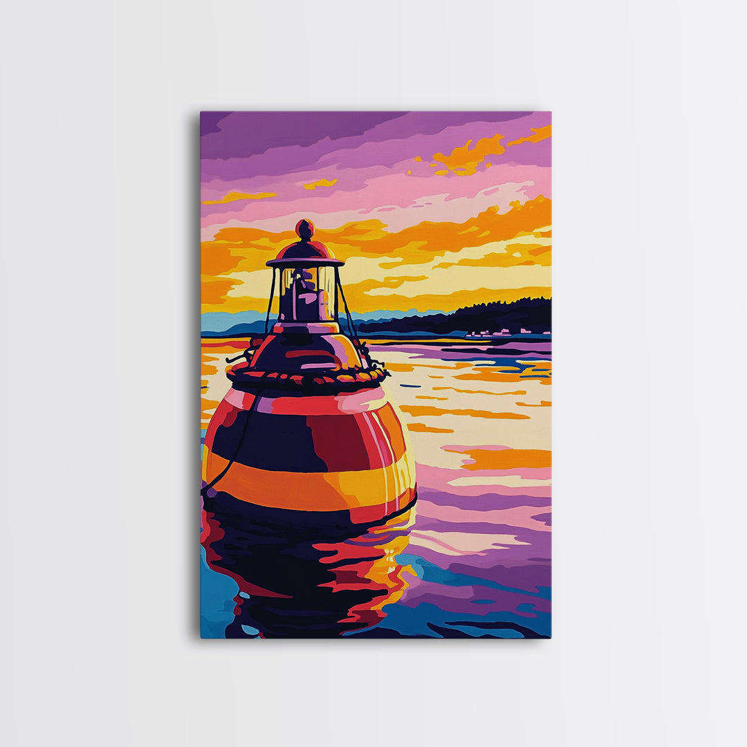 Ocean Buoy, Nautical Decor, Seaside Wall Art, Coastal Painting, Canvas Print, Living Room Wall Art, Beach House Art, Vibrant Watercolor