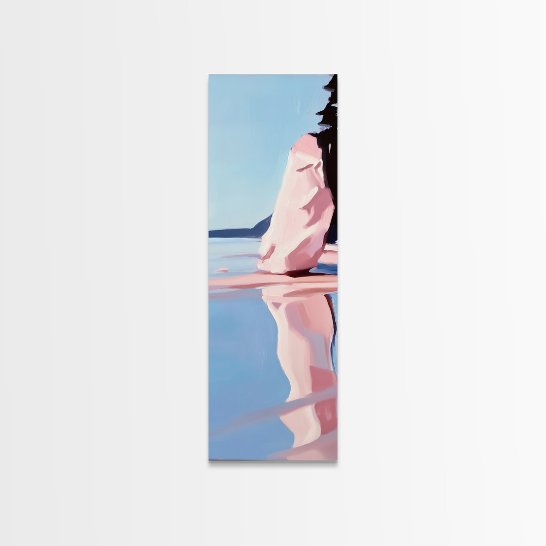 Rock Formation, Coastal Reflection, Ocean Landscape, Soft Pastel Seascape, Modern Boho Art, Nature Inspired Framed Canvas Print, Zen Decor