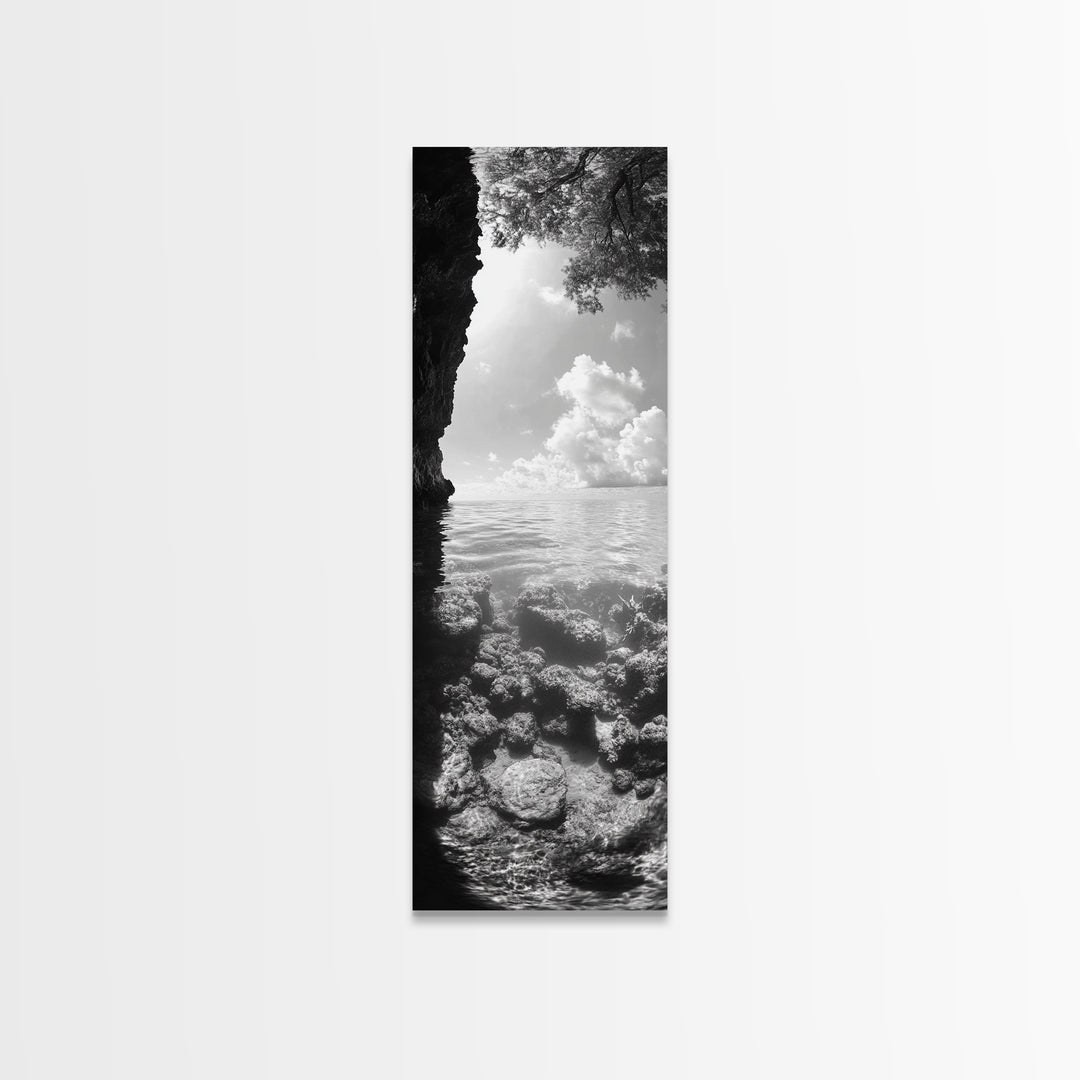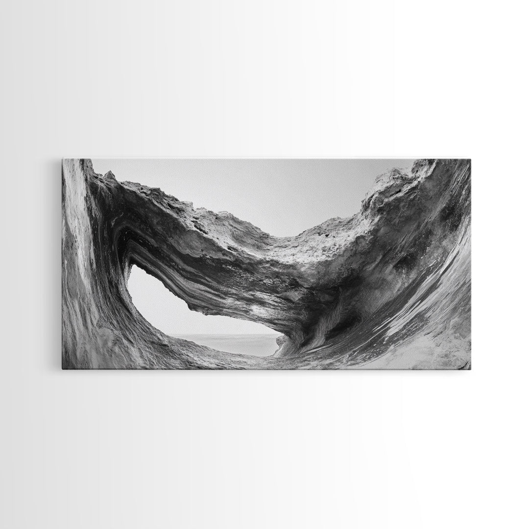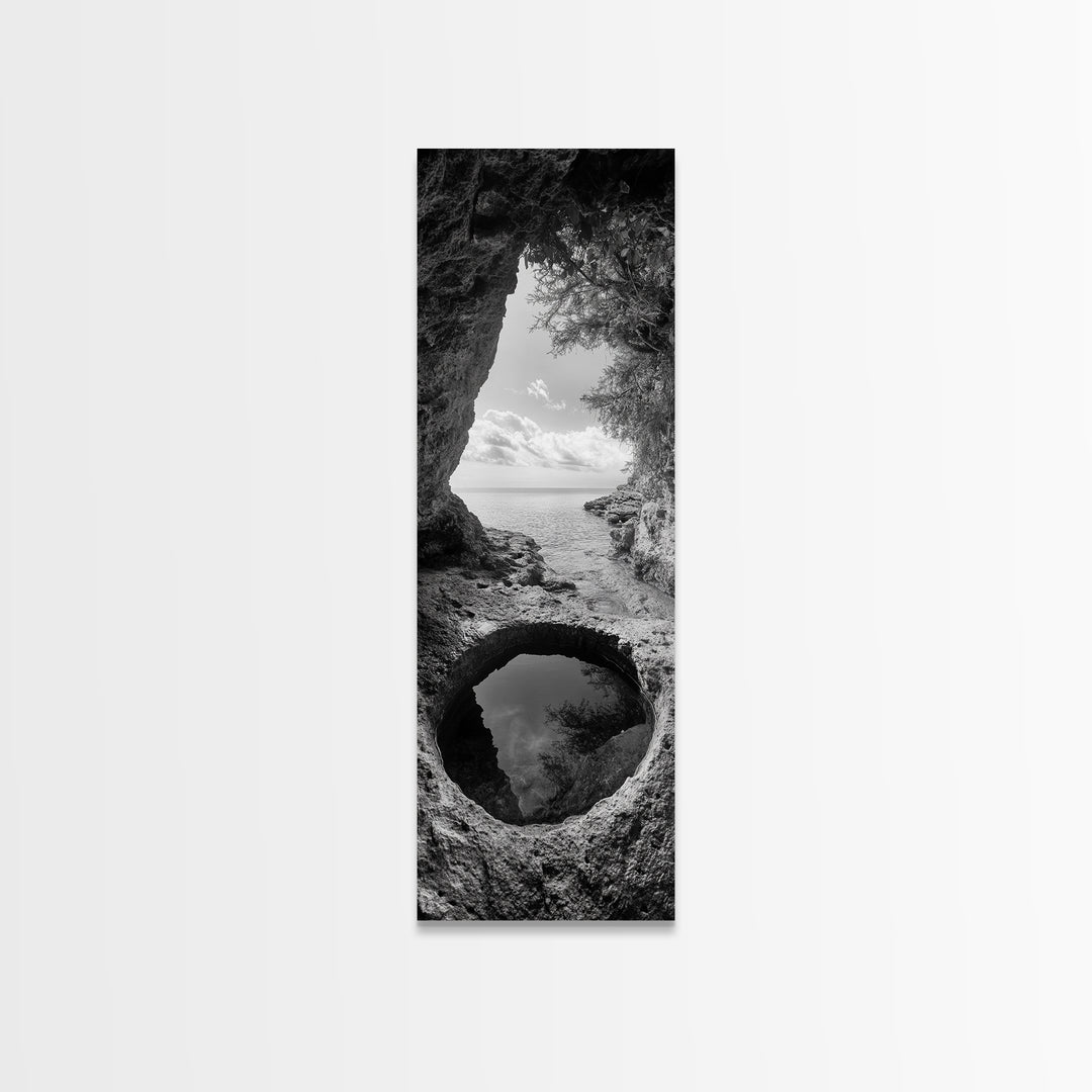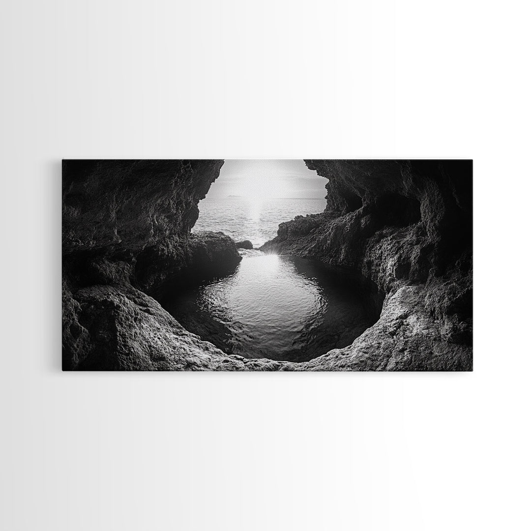 Ocean Cave, Coastal View, Natural Tide Pool, Canvas Print, Bathroom Wall Art, Seaside Decor, Minimalist Landscape, Black and White Art