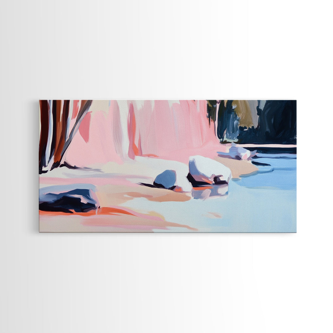 Rocky Beach Scene, Coastal Landscape, Modern Nature Art, Relaxing Seaside View, Framed Canvas Print, Ocean Wall Decor