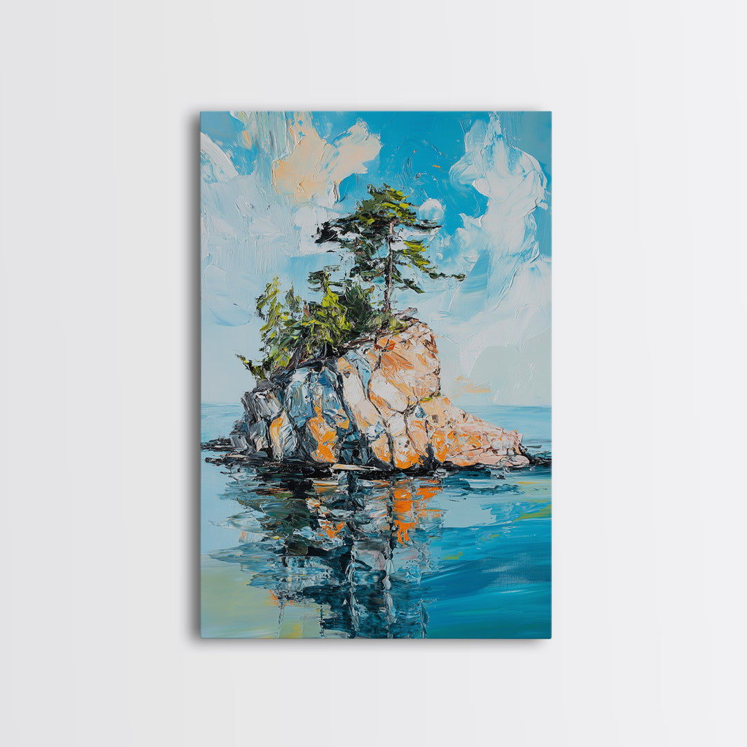 Rocky Island, Nature Painting, Canvas Print, Coastal Landscape Art, Ocean Wall Art, Nautical Decor, Living Room Art, Gift Idea