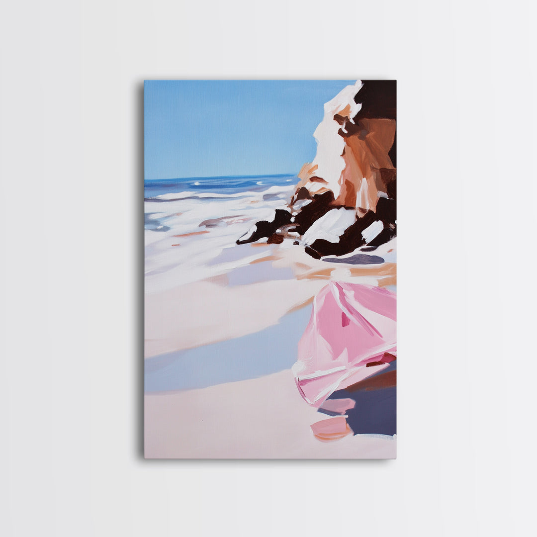 Ocean Cliffs, Coastal View, Framed Canvas Print, Beach House Wall Art, Minimalist Seascape, Nautical Home Aesthetic, Summer Vibes