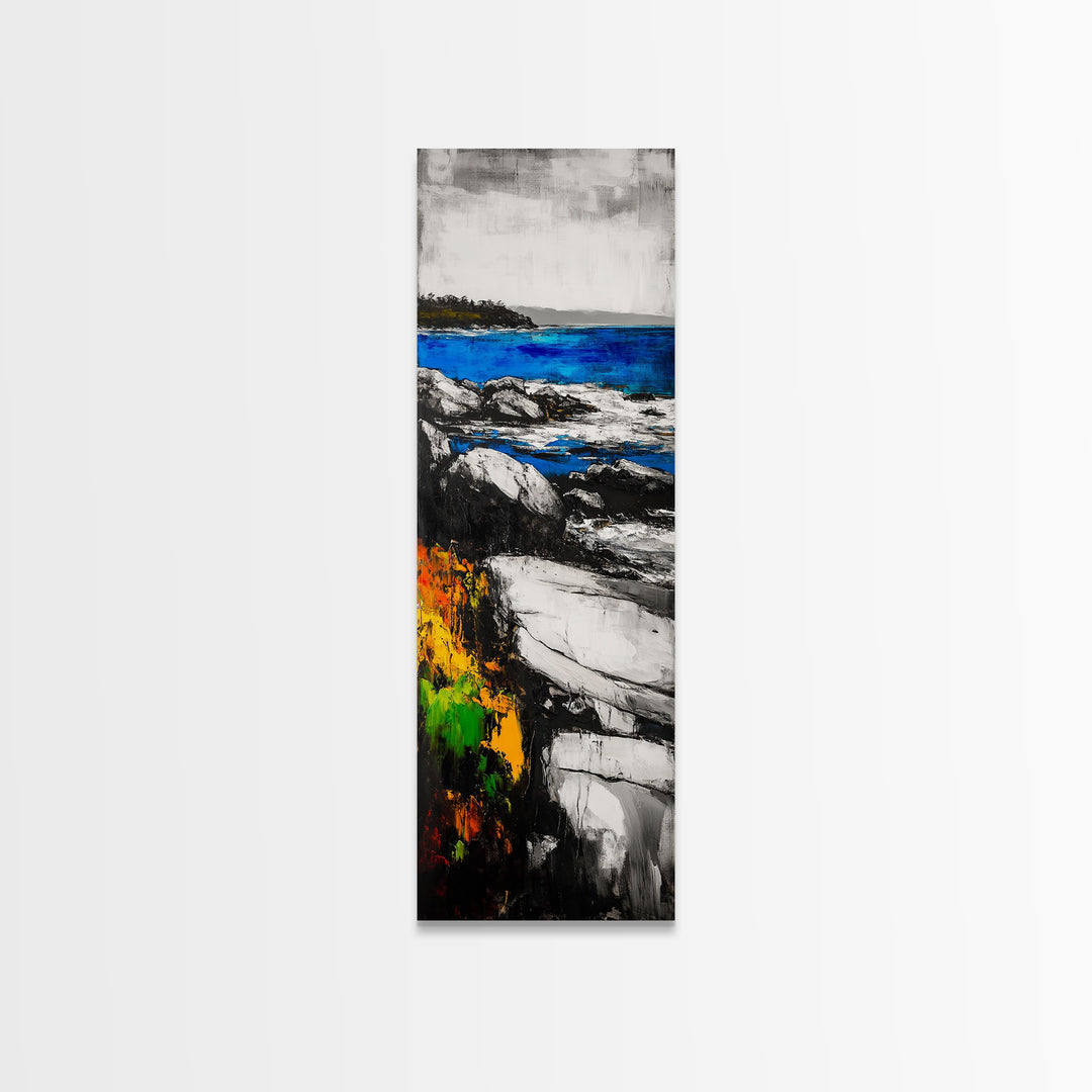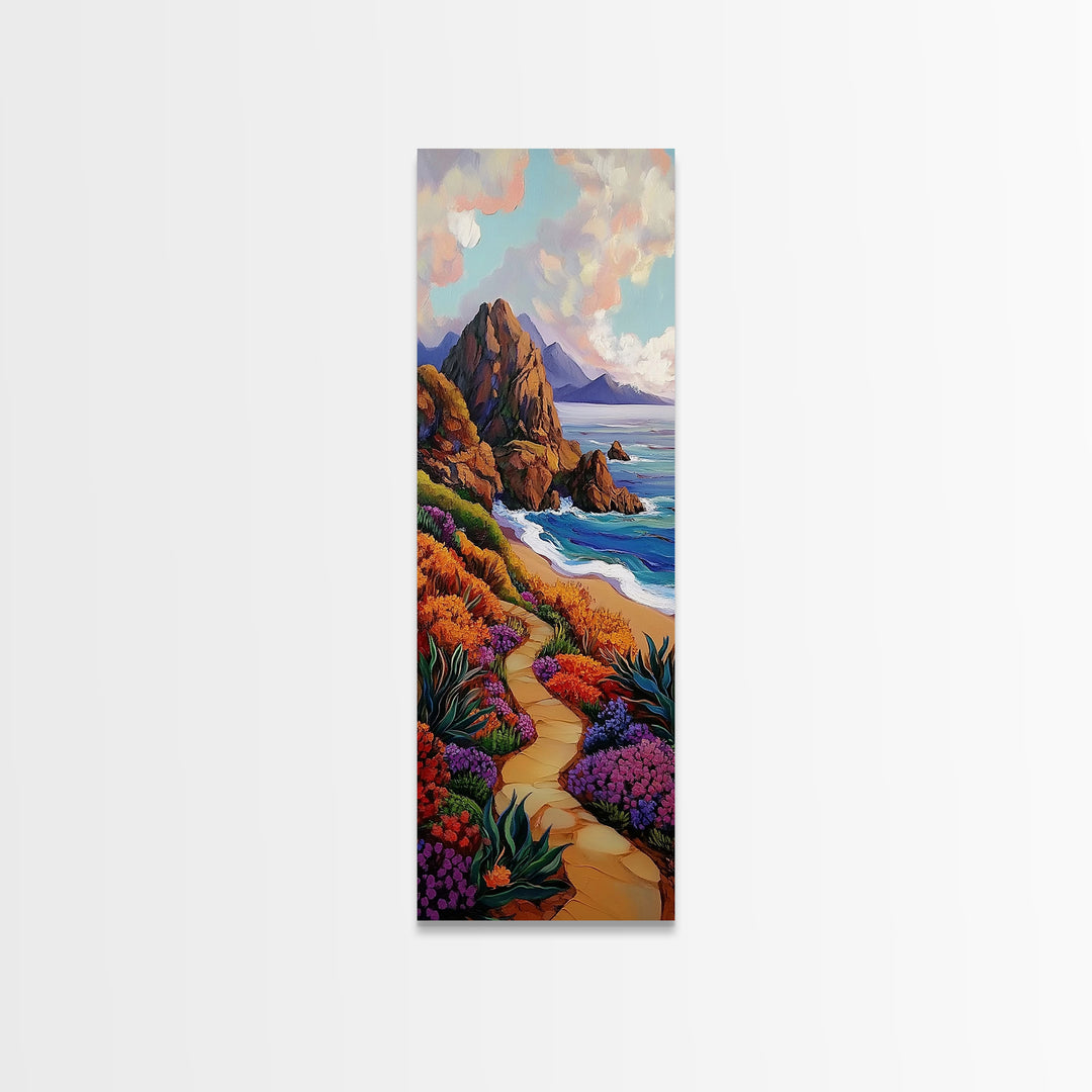 Rocky Coastal, Ocean, Trail, Canvas Print, beach wall decor, autumn art, rustic coastal painting, colorful nature bedroom artwork