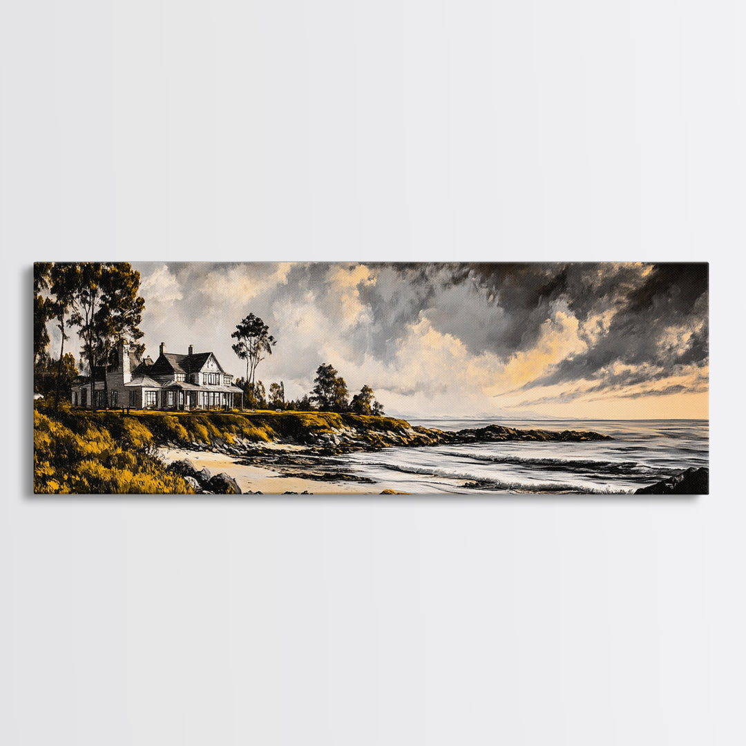 Ocean Cottage, Coastal Retreat, Beach House Painting, Scenic Landscape, Framed Canvas Print, Rustic Decor, Dining Room Wall Art