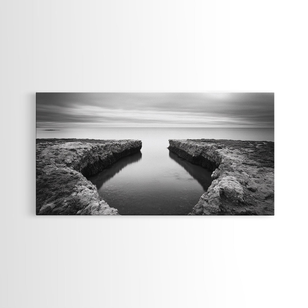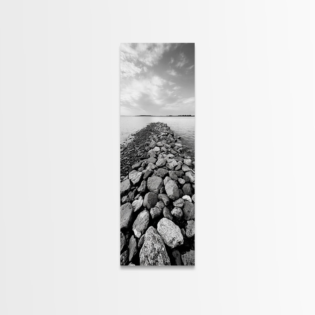 Rocky Jetty, Ocean Horizon, Black and White Seascape, Minimalist Nature, Canvas Print, Neutral Wall Decor, Office Wall Art, Hallway Decor