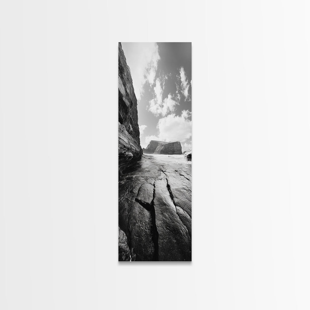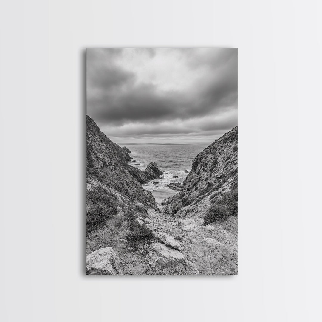 Ocean Crater, Coastal Cliff, Surreal Nature Art, Black and White Canvas Print, Gallery Wall Art, Earthy Decor, Adventure Inspired