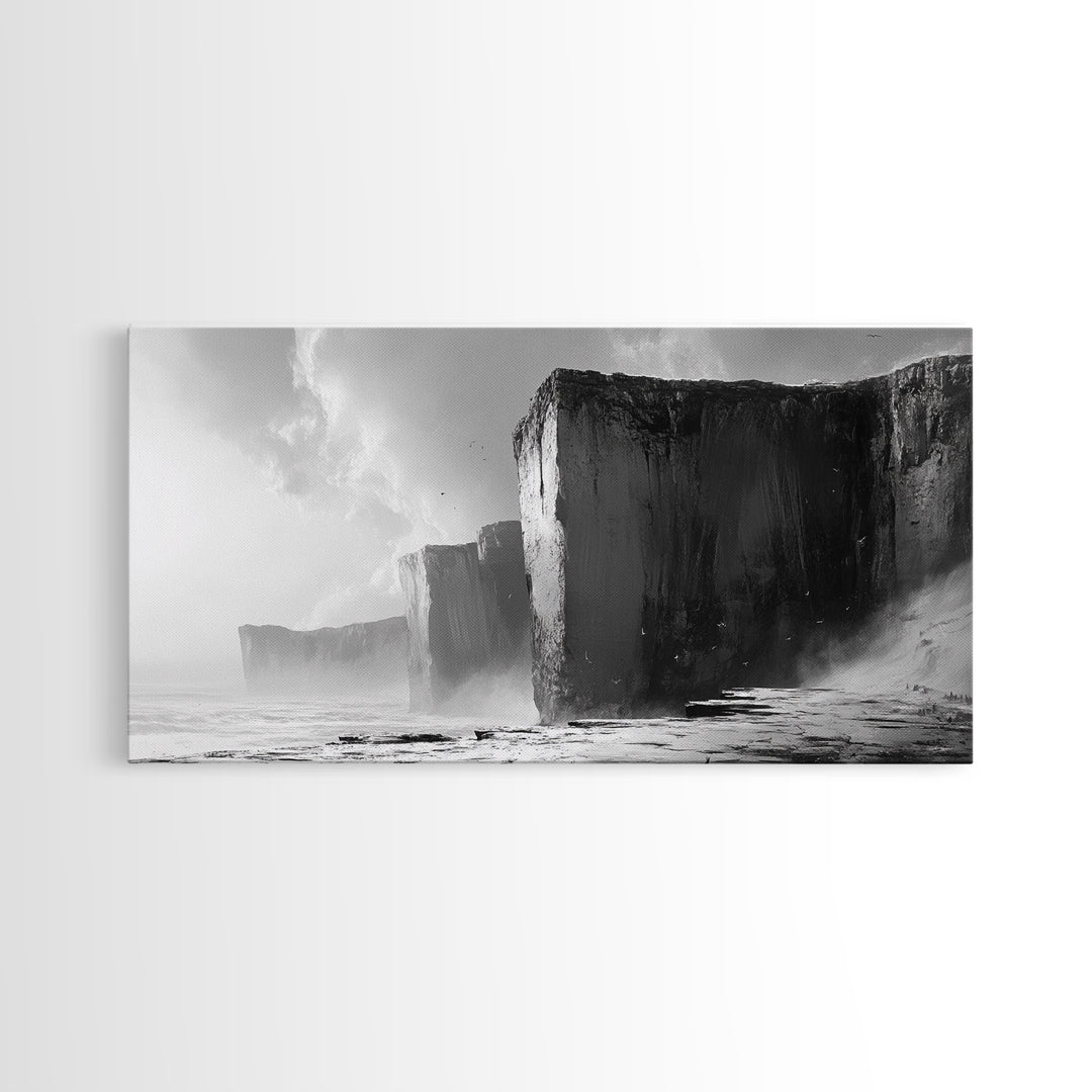 Ocean Cliffs, Towering Rock, Misty Coast, Rugged Seascape, Canvas Print, Moody Wall Art, Office Decor, Dramatic Landscape, Office Decor