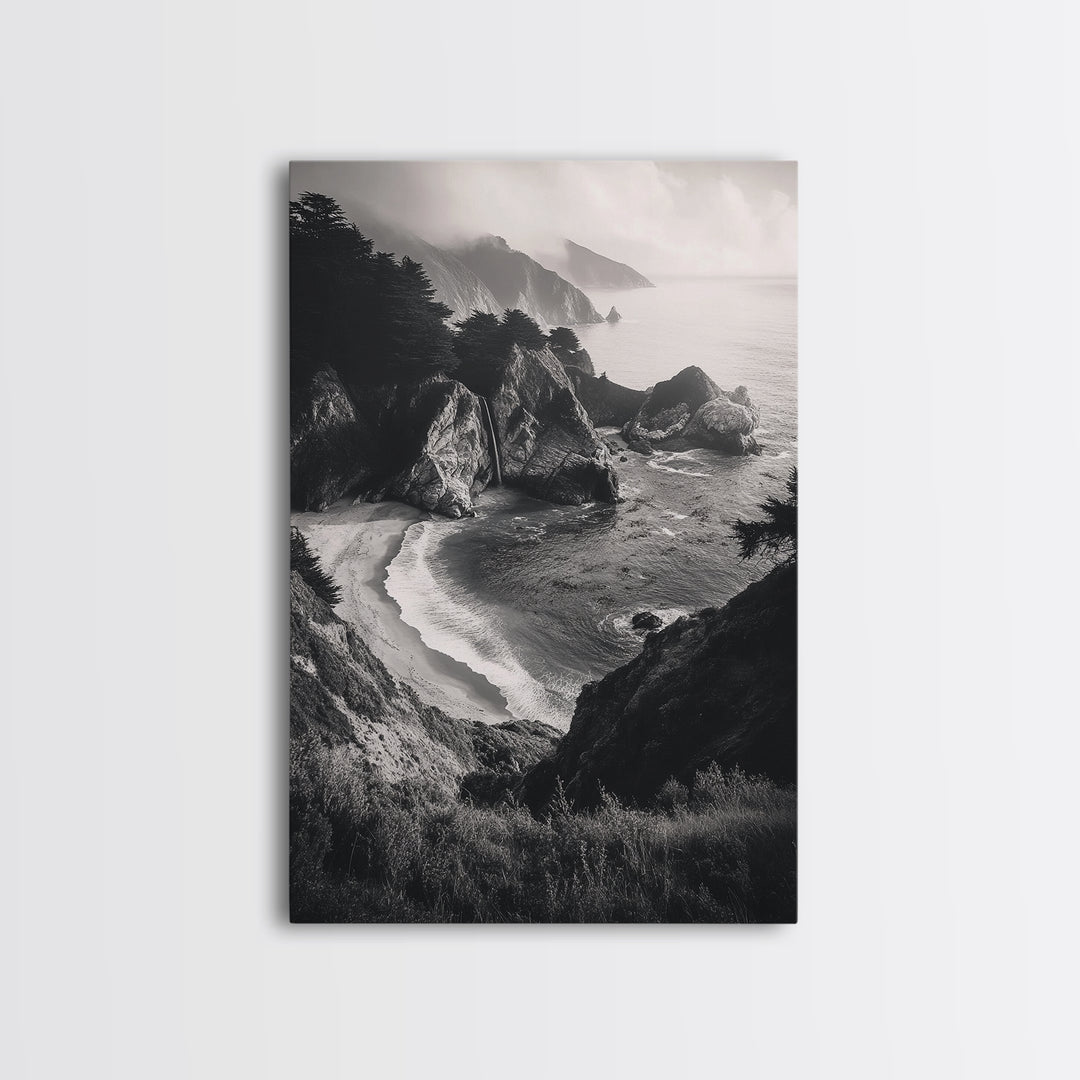 Ocean Cove, Cliffside Escape, Pacific Waters, Coastal Horizon, Canvas Print, Beach House Wall Art, Serene Nature Photography, Neutral Tones