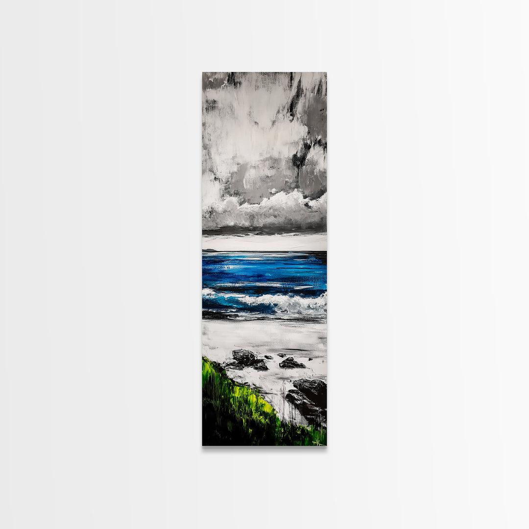 Ocean Horizon, Sunset Glow, Moody Painting, Framed Canvas Print, Coastal Landscape Art, Wabi Sabi Art, Vertical Wall Art