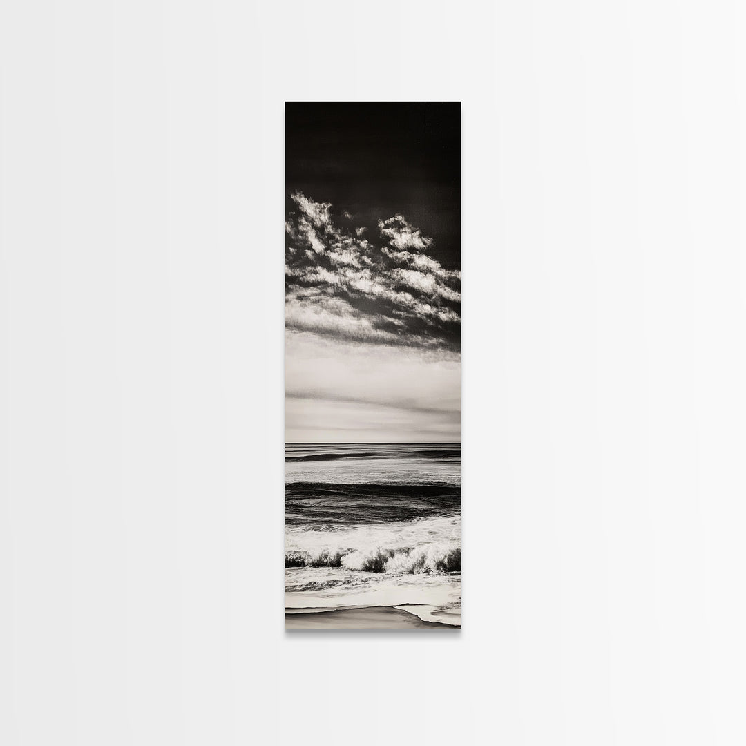 Ocean Horizon, Black and White, Cloudy Sky, Canvas Print, Coastal Wall Art, Minimalist Seascape, Modern Living Room Decor, Nautical Art