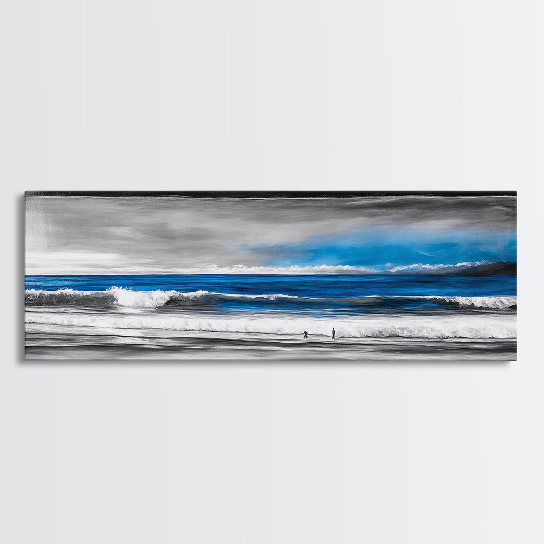 Ocean Horizon, Blue Waves, Coastal Landscape, Framed Canvas Print, Minimalist Seascape, Nautical Wall Art, Living Room Artwork
