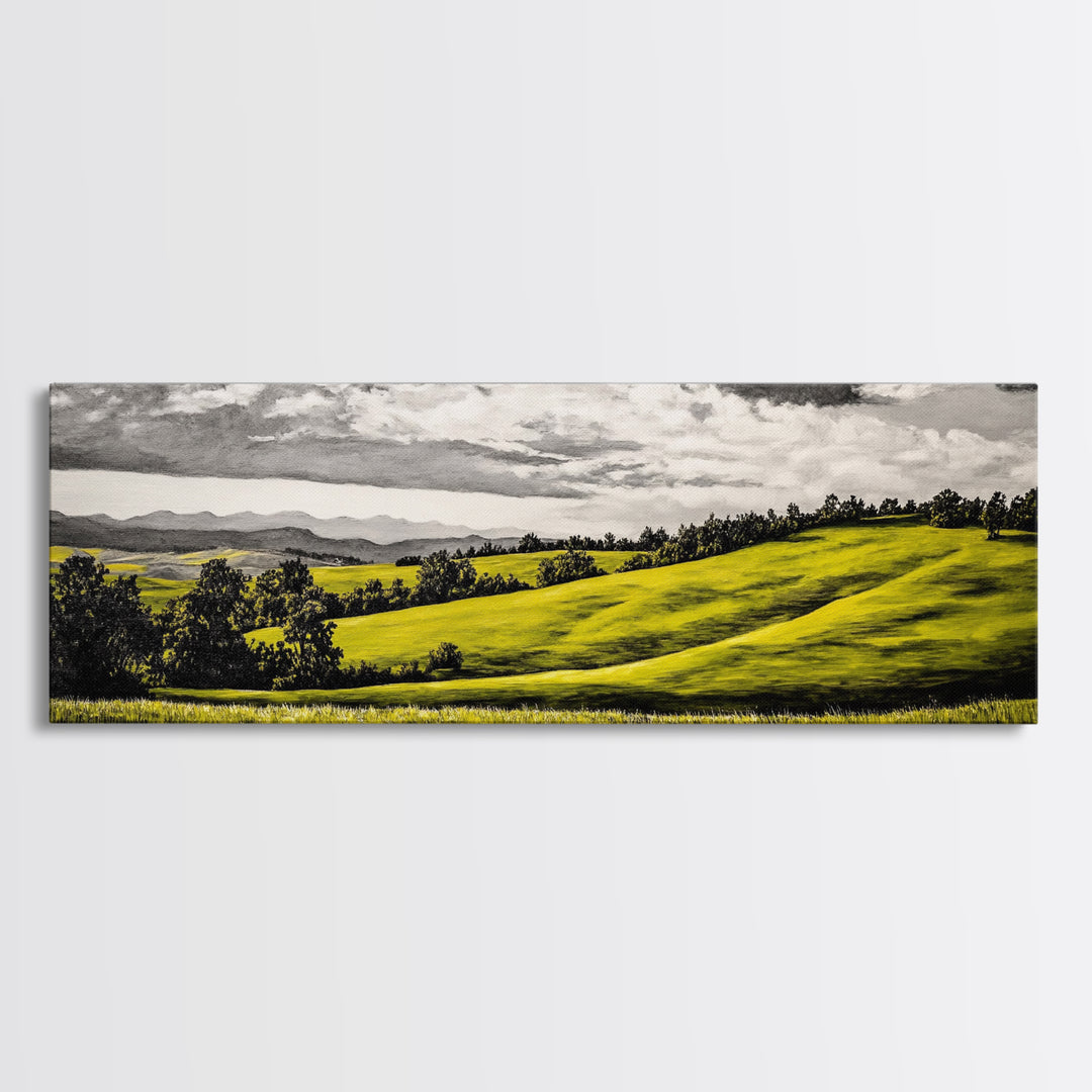 Rolling Hills, Countryside Landscape, Green Fields, Framed Canvas Print, Rural Wall Art, Nature Scene, Pastoral Painting, Home Office Art