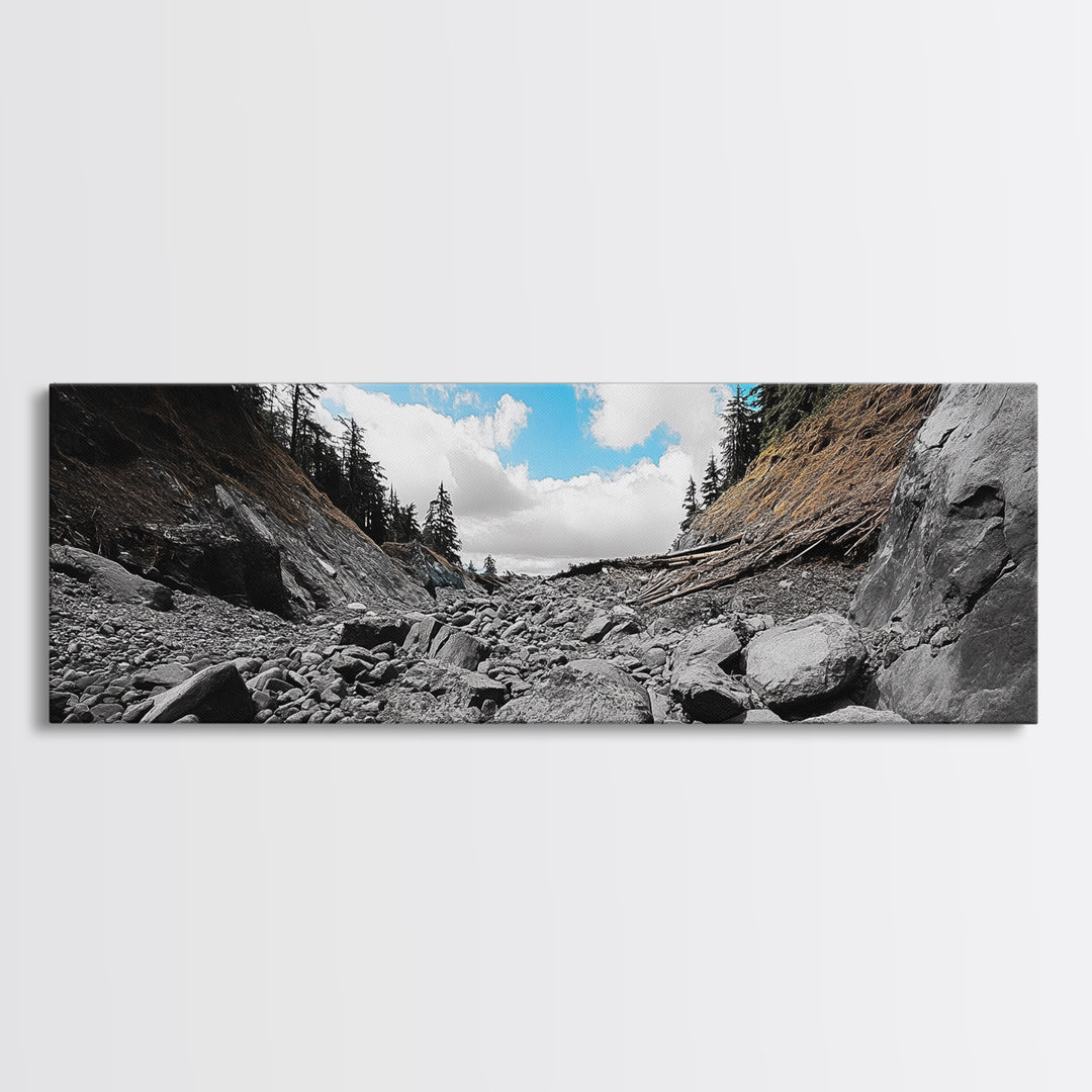 Rocky Trail, Blue Sky, Wilderness Path, Forest Adventure, Canvas Print, Rustic Nature Art, Hiking Wall Art, Cabin Living Room Decor