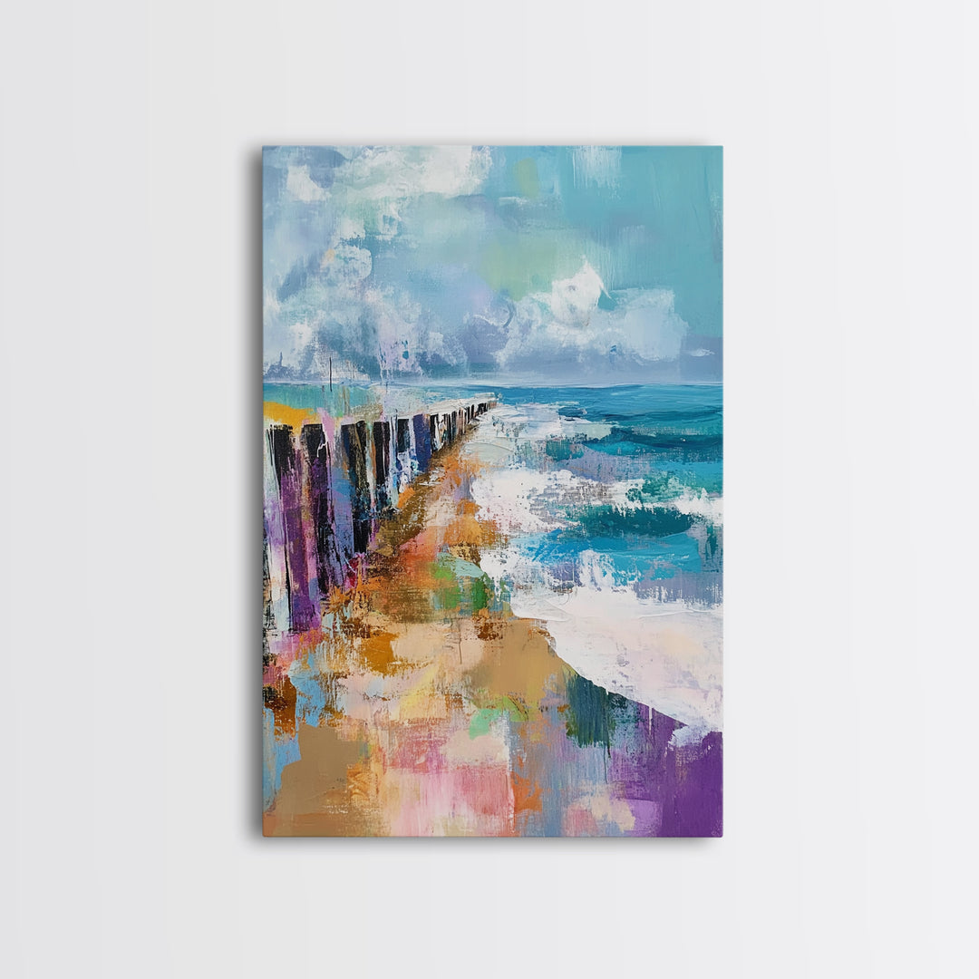 Ocean Pier, Coastal Landscape Art, Seascape Painting, Nautical Decor, Beach Wall Art, Living Room Art, Canvas Print, Gift Idea