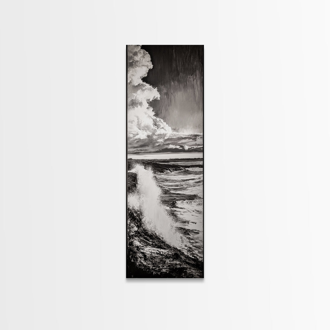 Ocean Power, Wave Crash, Coastal Landscape, Dramatic Seascape, Framed Canvas Print, Black and White Wall Art, Beach House Decor