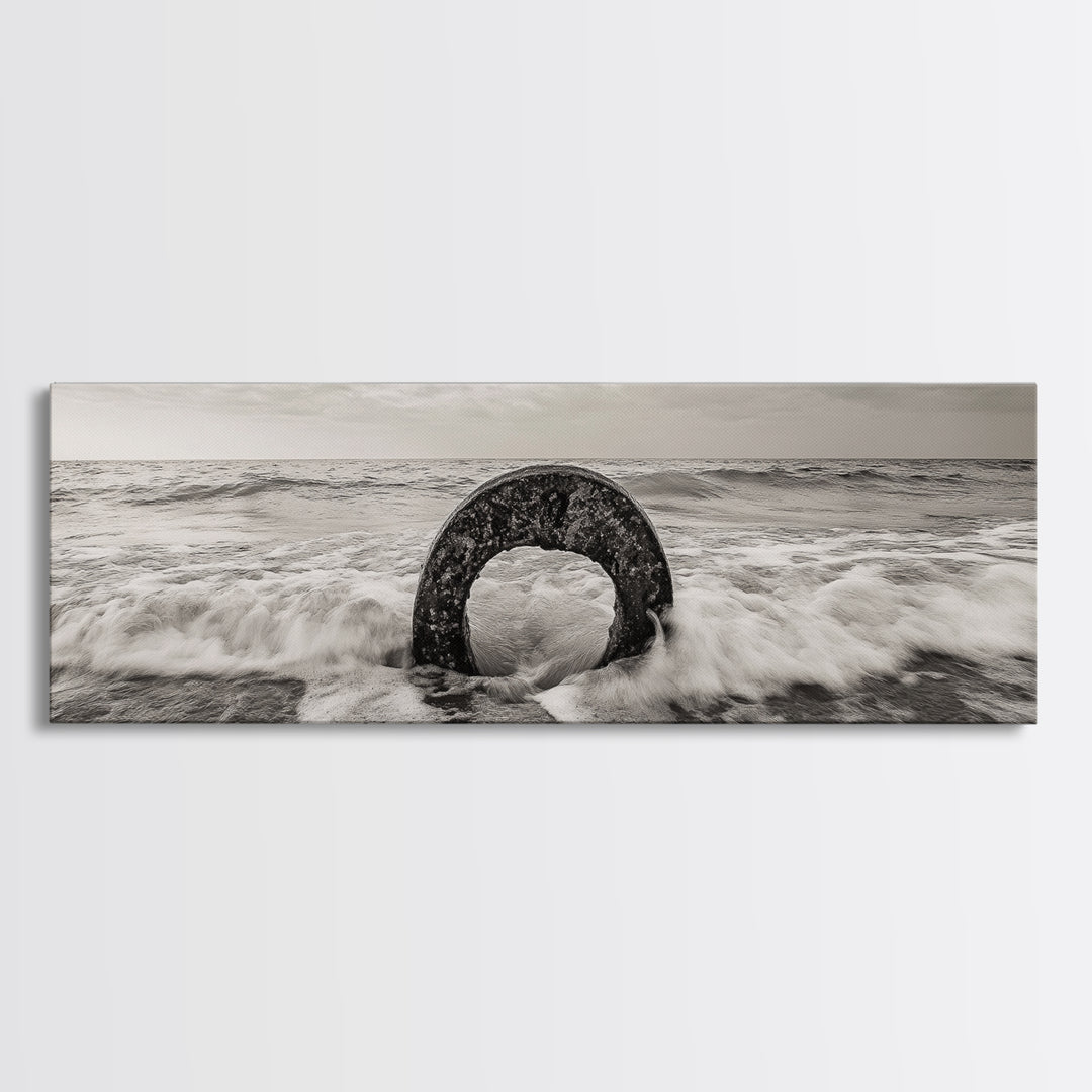 Ocean Ring, Waves Crashing, Sea Sculpture, Framed Canvas Print, unique beach photography, industrial coastal wall art, modern bathroom decor