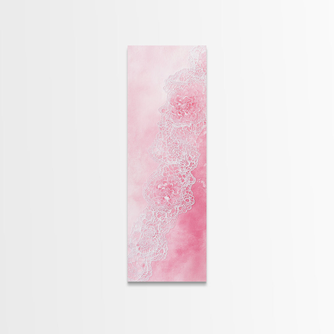 Romantic Lace Pattern Framed Canvas Print Cottagecore Feminine Home Decor Rustic Wall Art Light Pink Abstract Bedroom Art Design