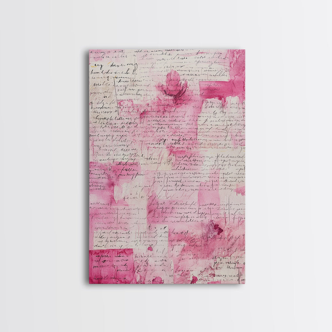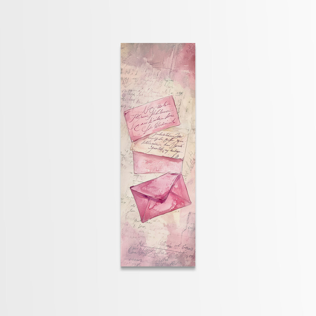 Romantic Pink Envelopes Canvas Print Rustic Wall Art Cottagecore Decor Guest Room Vertical Artwork Vintage Aesthetic Writing