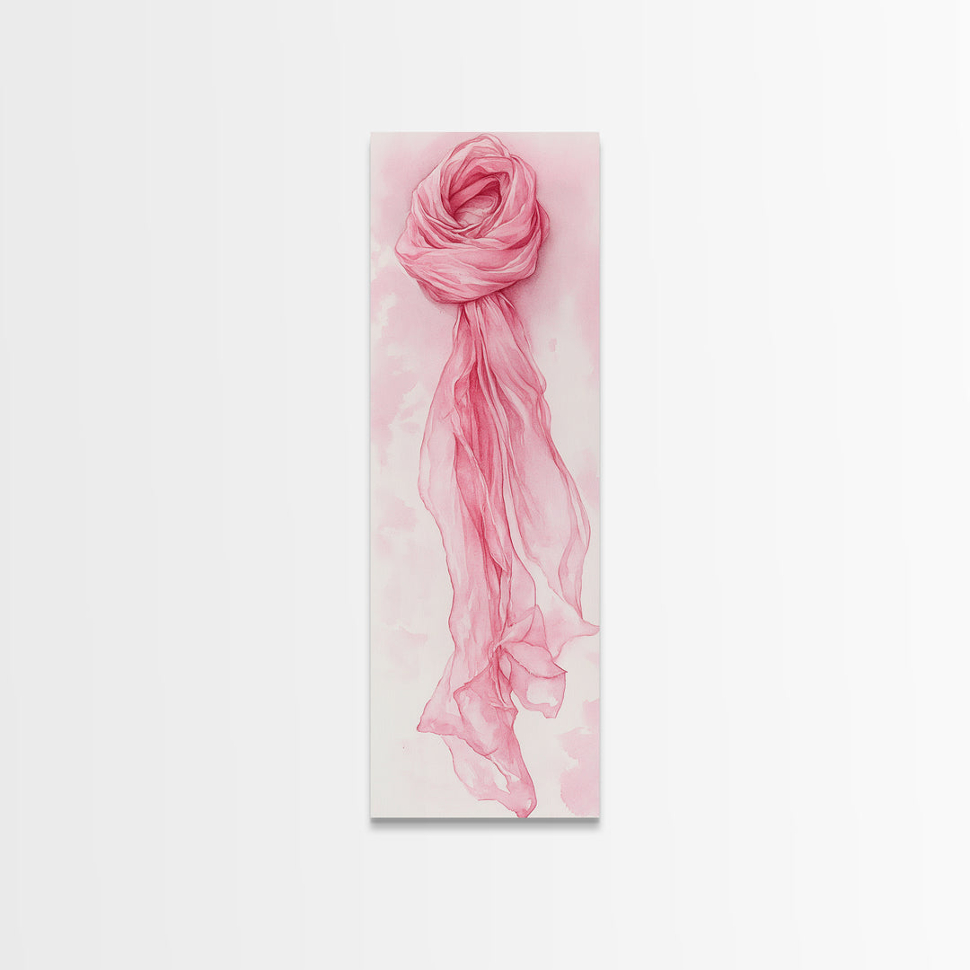 Romantic Pink Scarf Framed Canvas Print, Light Pink Cottagecore Whimsical Art, Minimalist Vertical Wall Art for Bedroom or Office Decor