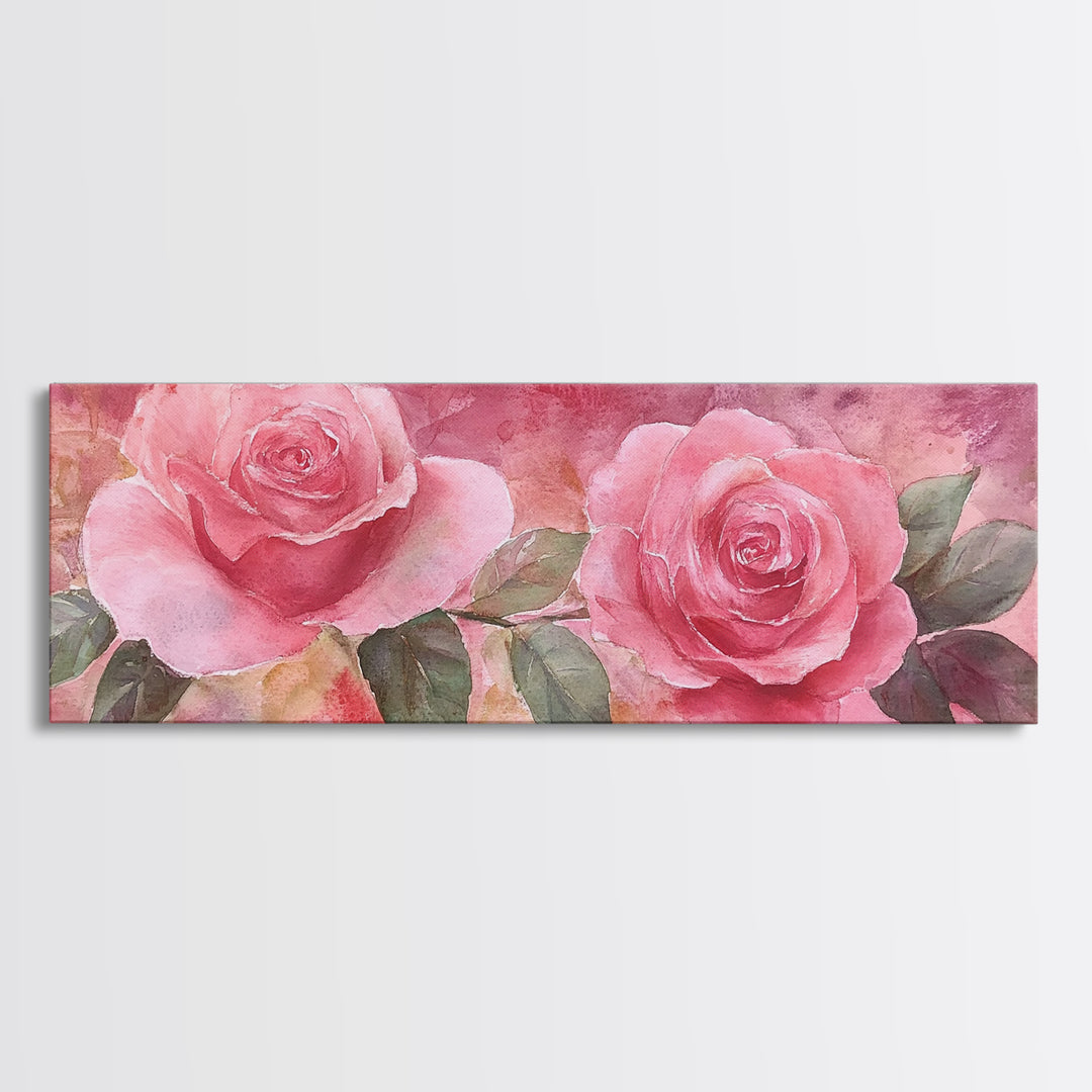 Romantic Pink Roses Framed Canvas Print - Elegant Rose Painting, Light Pink Wall Art, Cottagecore Bedroom Decor, Botanical Floral Art