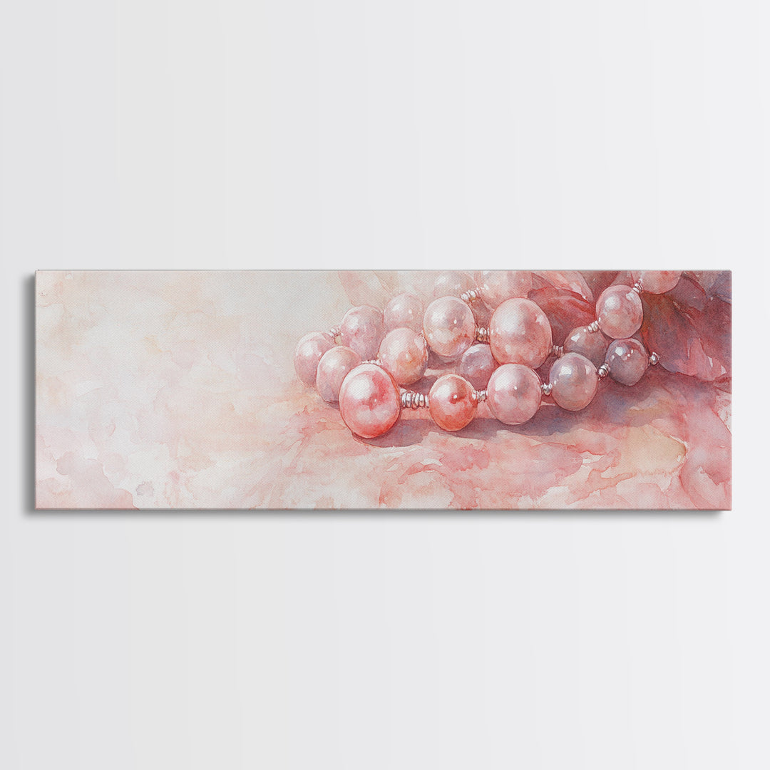 Romantic Pink Pearls Framed Canvas Print - Elegant Light Pink Art, Minimalist Wall Decor, Cottagecore Bedroom Painting, Gift Idea, Whimsical Art