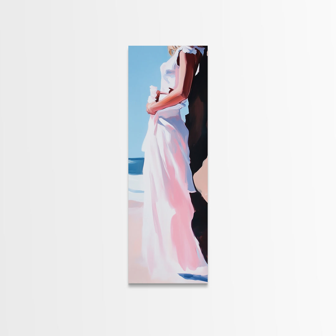 Romantic Embrace, Beach Couple Art, Minimalist Love Print, Coastal Home Decor, Soft Color Aesthetic, Canvas Print, Bedroom Wall Art