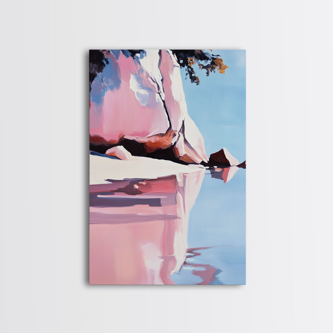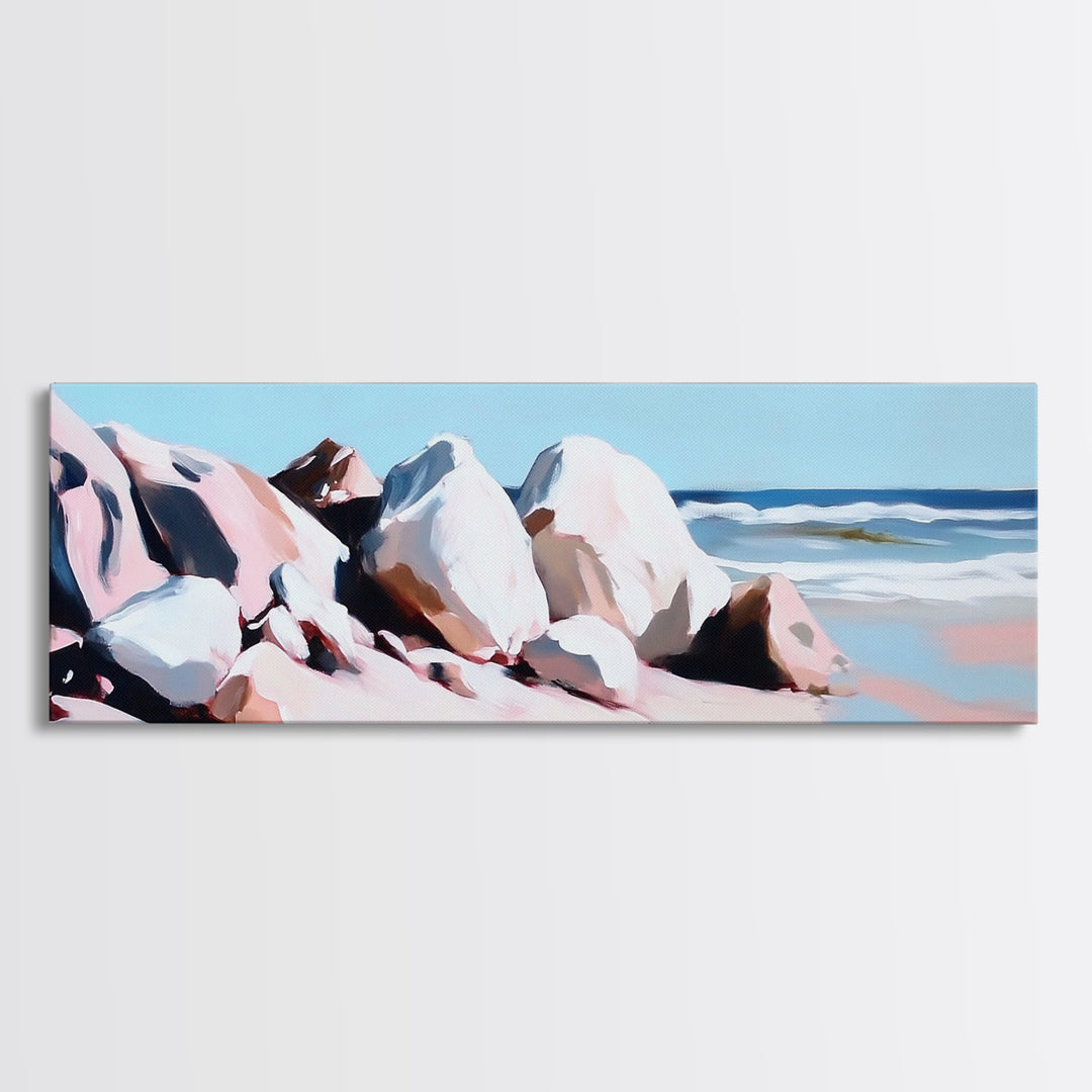 Ocean Rockscape, Nature Wall Art, Minimalist Coastal, Modern Beach House Decor, Pastel Seascape, Relaxing Art, Framed Canvas Print