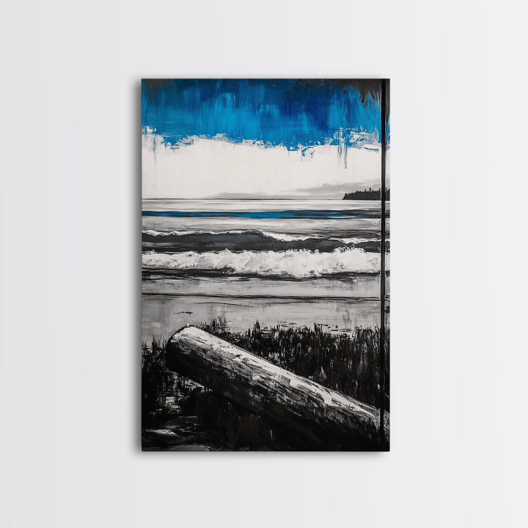 Ocean Shore Driftwood, Seaside Flower Art, Nature Landscape, Framed Canvas Print, Coastal Living Room or Beach House Wall Art