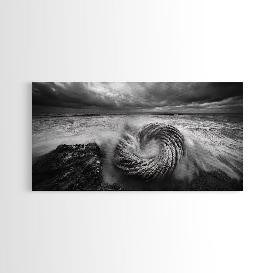 Ocean Rope Coil, Stormy Sea Art, Nautical Wall Decor, Coastal Photography, Canvas Print, Moody Ocean Art, Bathroom Wall Art, Nautical Home Decor