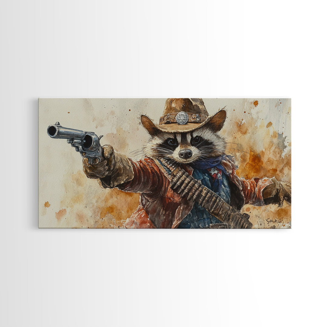 Rootin' Tootin' Cowboy Shootin' Wildwest Cowboy Raccoon Canvas Print - Racoon Painting - Cowboy Raccoon - Wild West Art