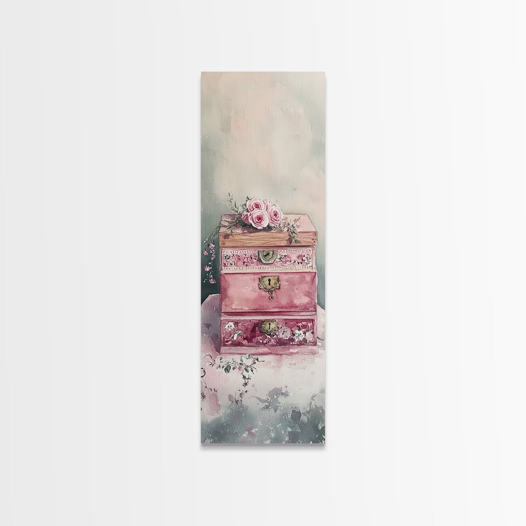 Rose Chest Framed Canvas Print Rustic Wall Art Cottagecore Art Botanical Prints Light Pink Wall Art Bedroom Art Gift Idea Her