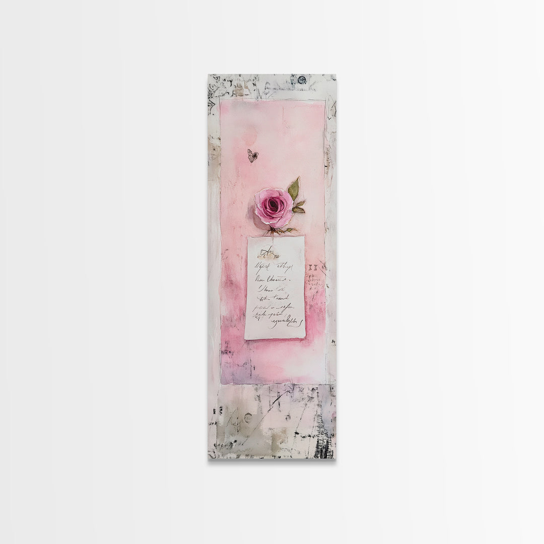 Rose and Note Framed Canvas Print Romantic Pink Abstract Art Feminine Rustic Decor Wabi Sabi Cottagecore Wall Art Gift Bedroom Living Room