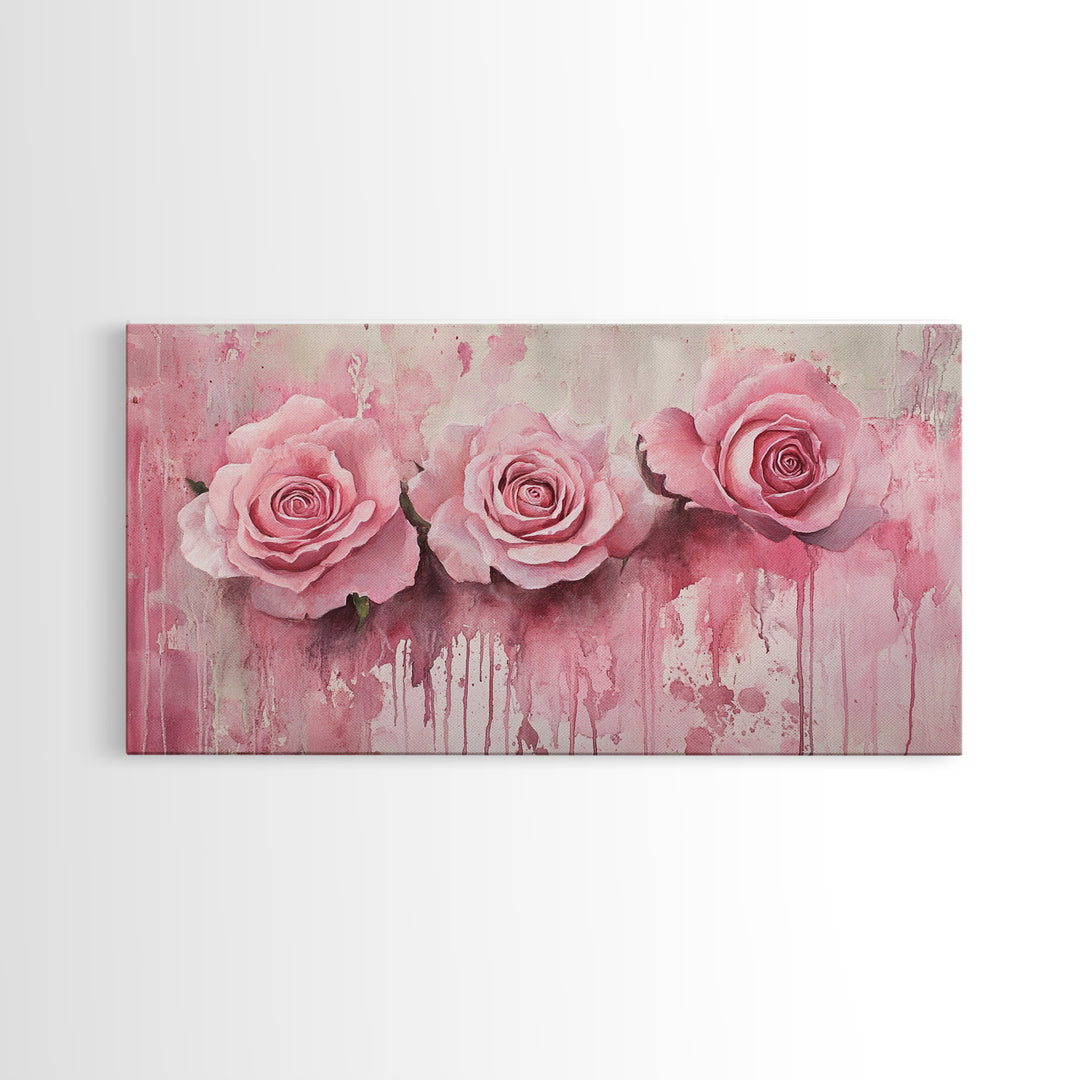 Rose Painting Framed Canvas Print Rustic Wall Art Cottagecore Bedroom Art Light Pink Wall Art Floral Decor Gift Idea Her