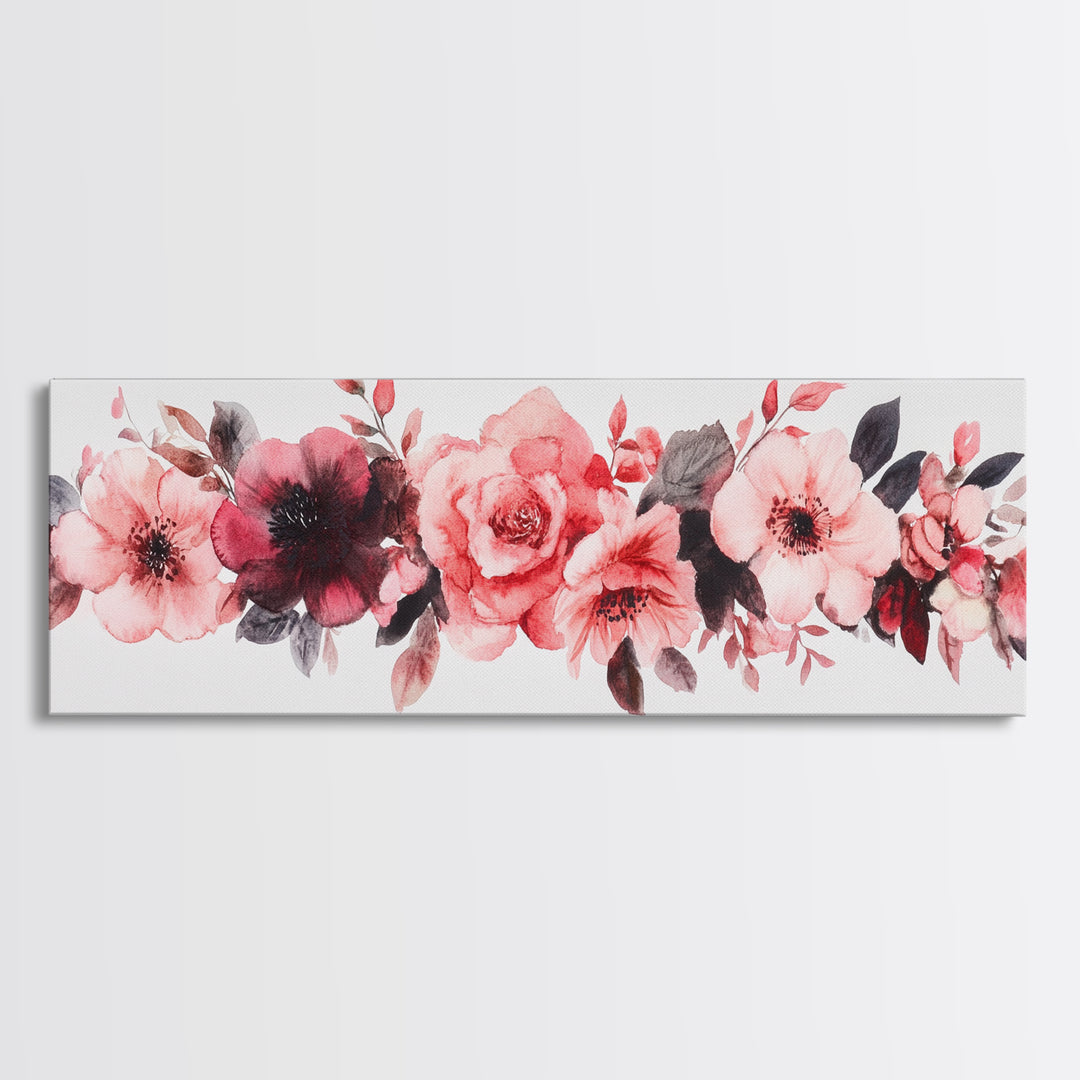 Rose Canvas Print, Botanical Framed Canvas Art, Wildflower Wall Decor, Cottagecore Rustic Art, Light Pink and Red Floral Wall Art