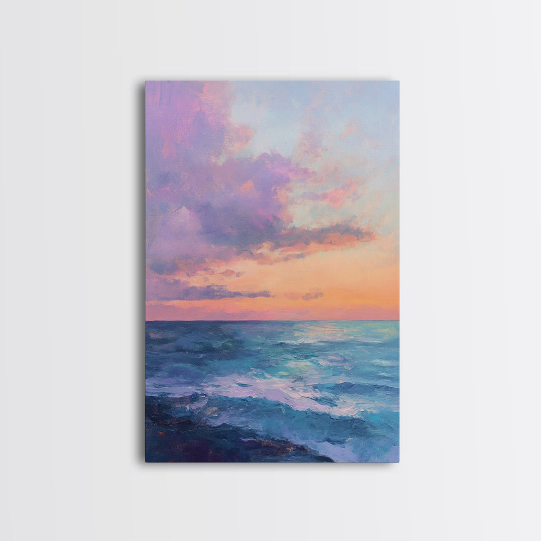 Ocean Sunset, Coastal Serenity, Beach House Art, Seascape Painting, Nature Wall Decor, Framed Canvas Print, Living Room Wall Art