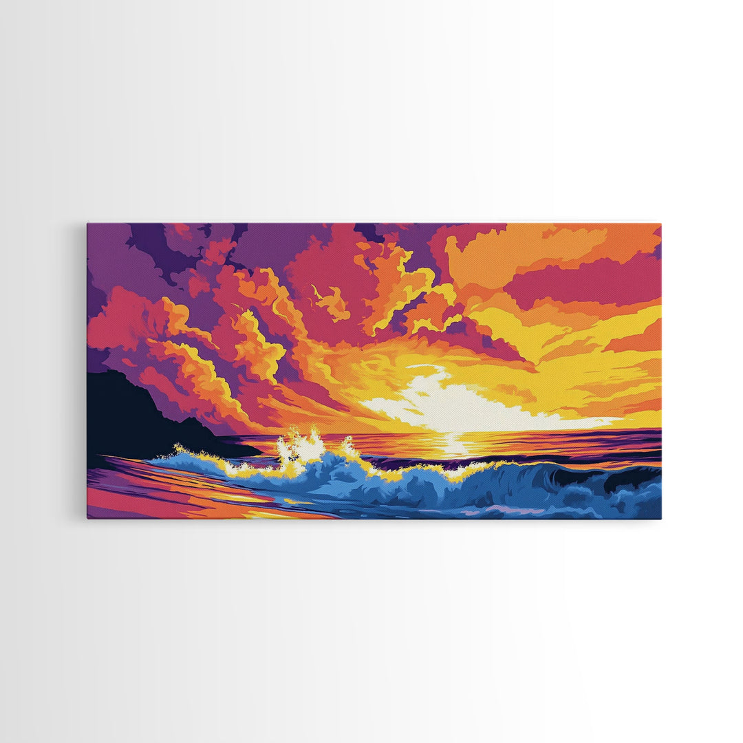 Ocean Sunset, Coastal Waves, Beach Wall Art, Canvas Print, Vibrant Seascape, Nautical Home Decor, Summer Art, Tropical Landscape