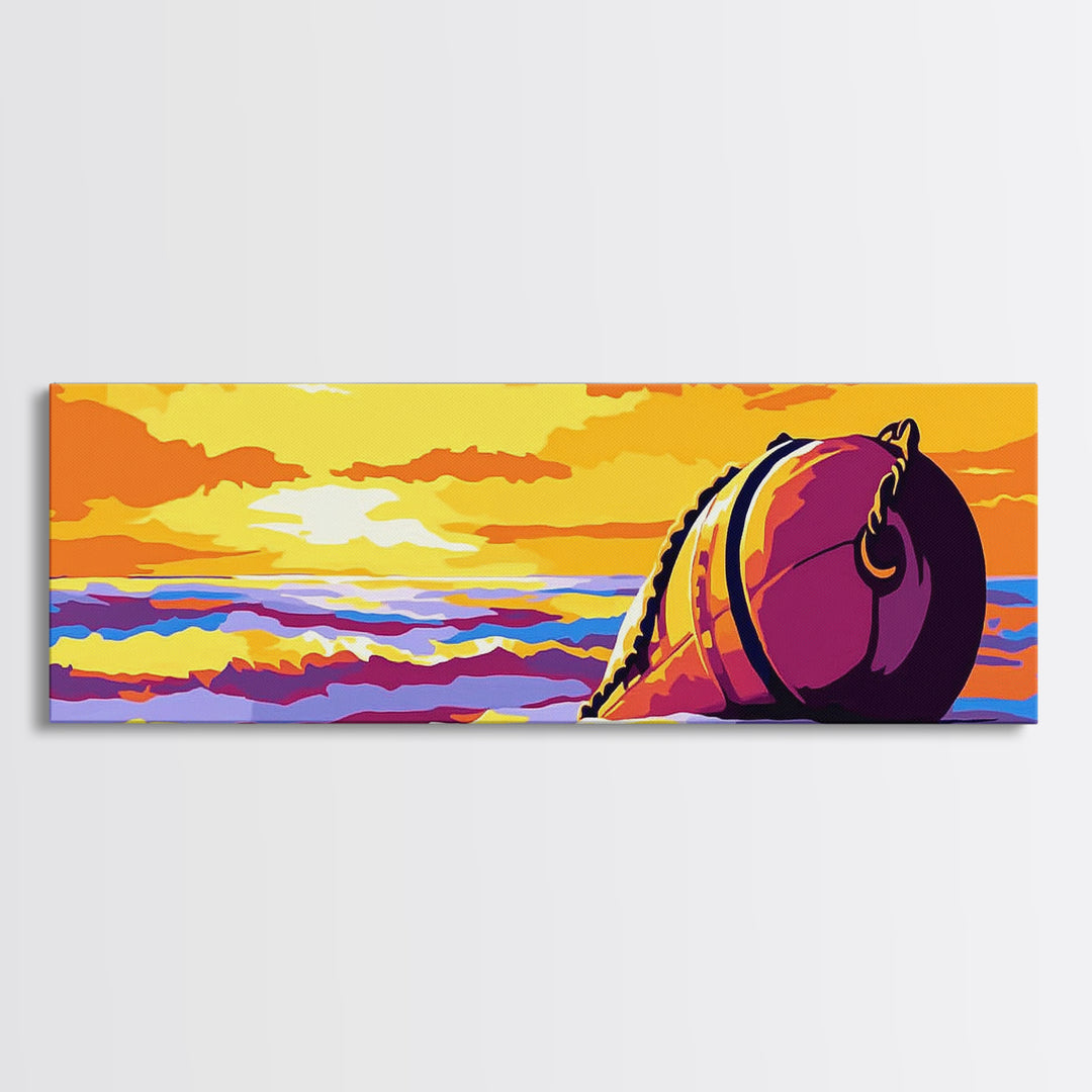 Ocean Sunset, Floating Buoy, Canvas Print, Nautical Art, Coastal Home Decor, Beach House Wall Art, Vibrant Seascape, Living Room Decor