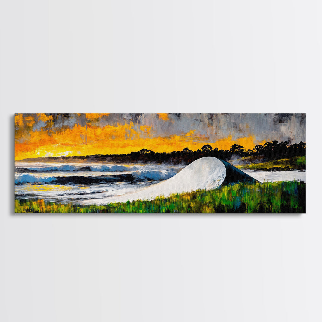 Ocean Sunset Wave, Beach Landscape, Vibrant Seascape, Framed Canvas Print, Coastal Wall Art, Nautical Decor, Summer Home Accent