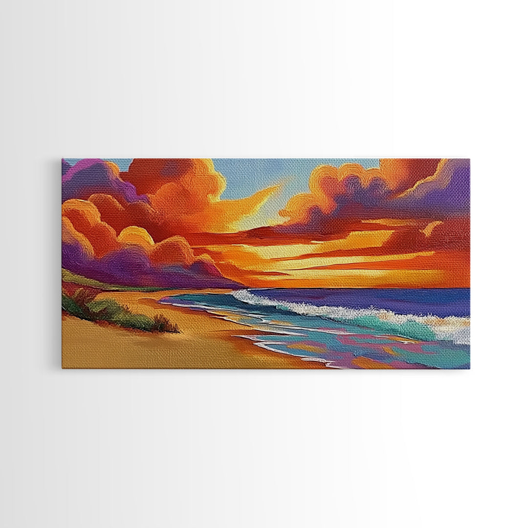 Ocean Sunset, Colorful Sky, Tranquil Shore, Canvas Print, Peaceful Beach Wall Art, Vibrant Living Room Decor, Seaside Home Aesthetic