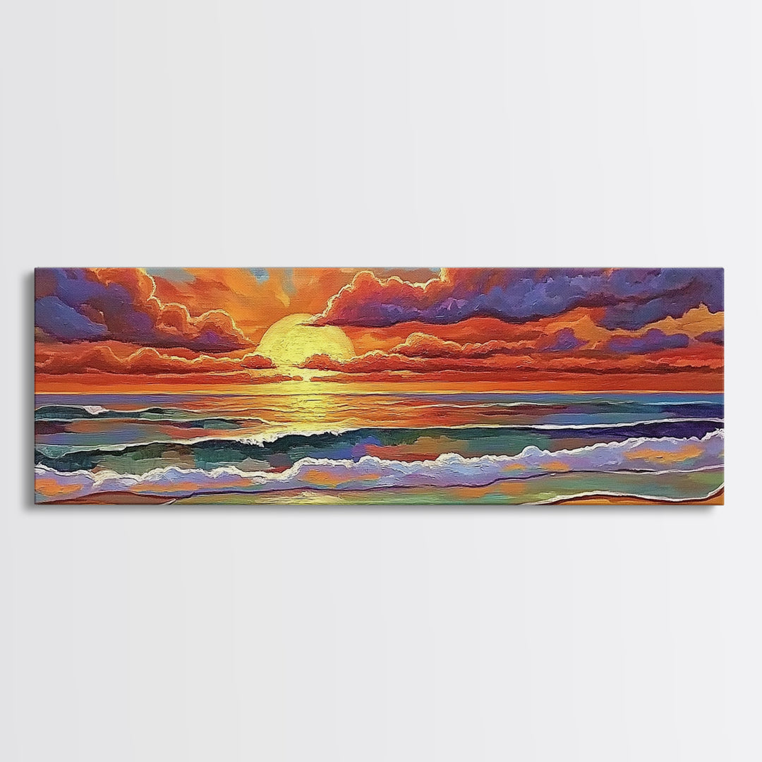 Ocean Sunset, Coastal Seascape, Canvas Print, Beach House Wall Art, Nautical Painting, Living Room Artwork, Modern Home Decor, Bold Colors