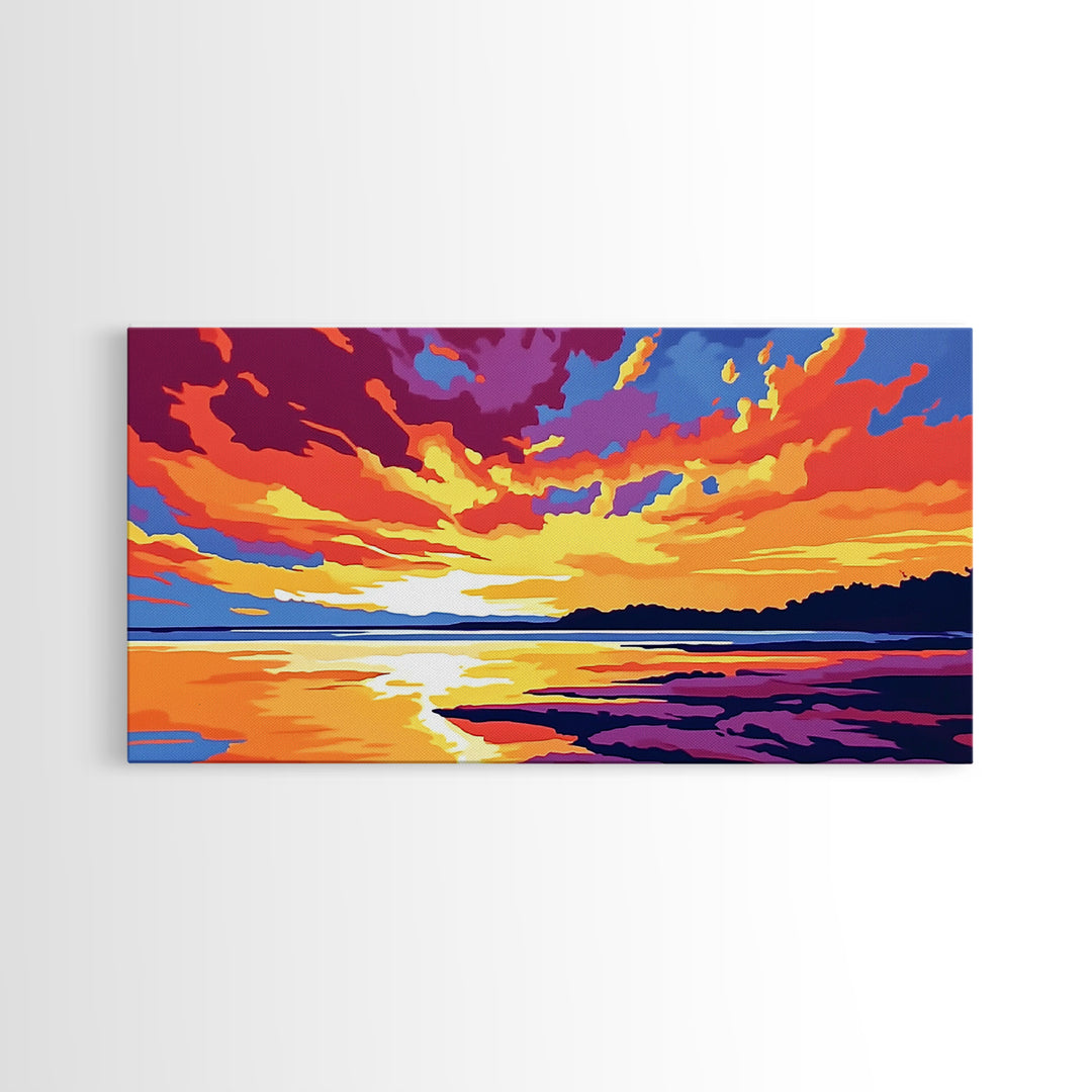 Ocean Sunset, Vibrant Landscape, Framed Canvas Print, Coastal Art, Beach House Decor, Living Room Art, Minimalist Nature Painting