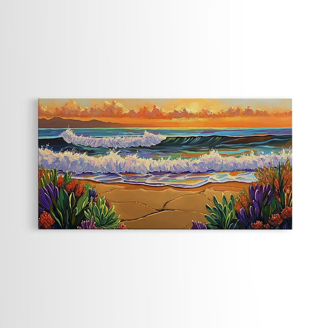 Ocean Sunset, Waves, Coastal, Canvas Print, ocean waves at sunset, Coastal Wall Art, vibrant seascape decor, beach house art