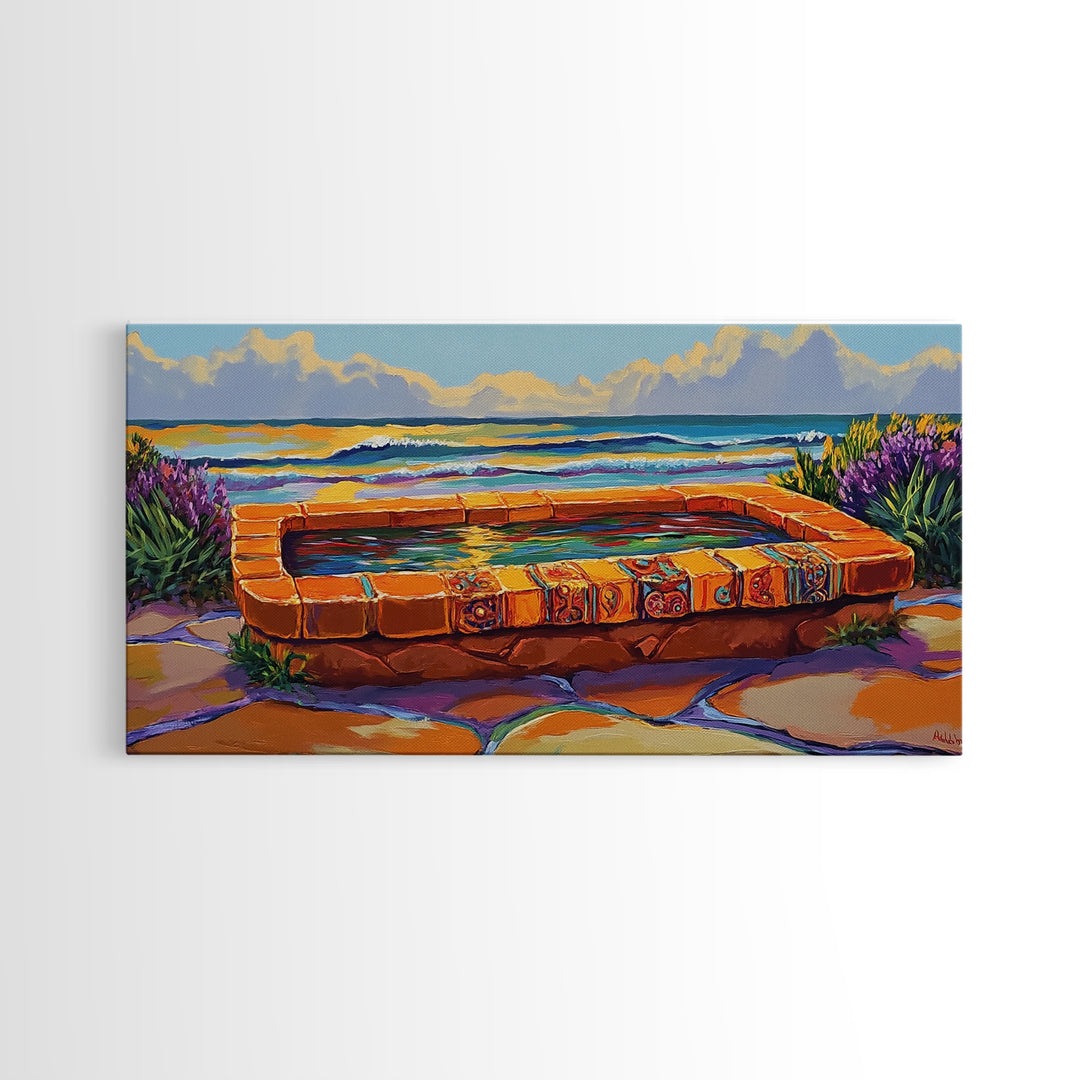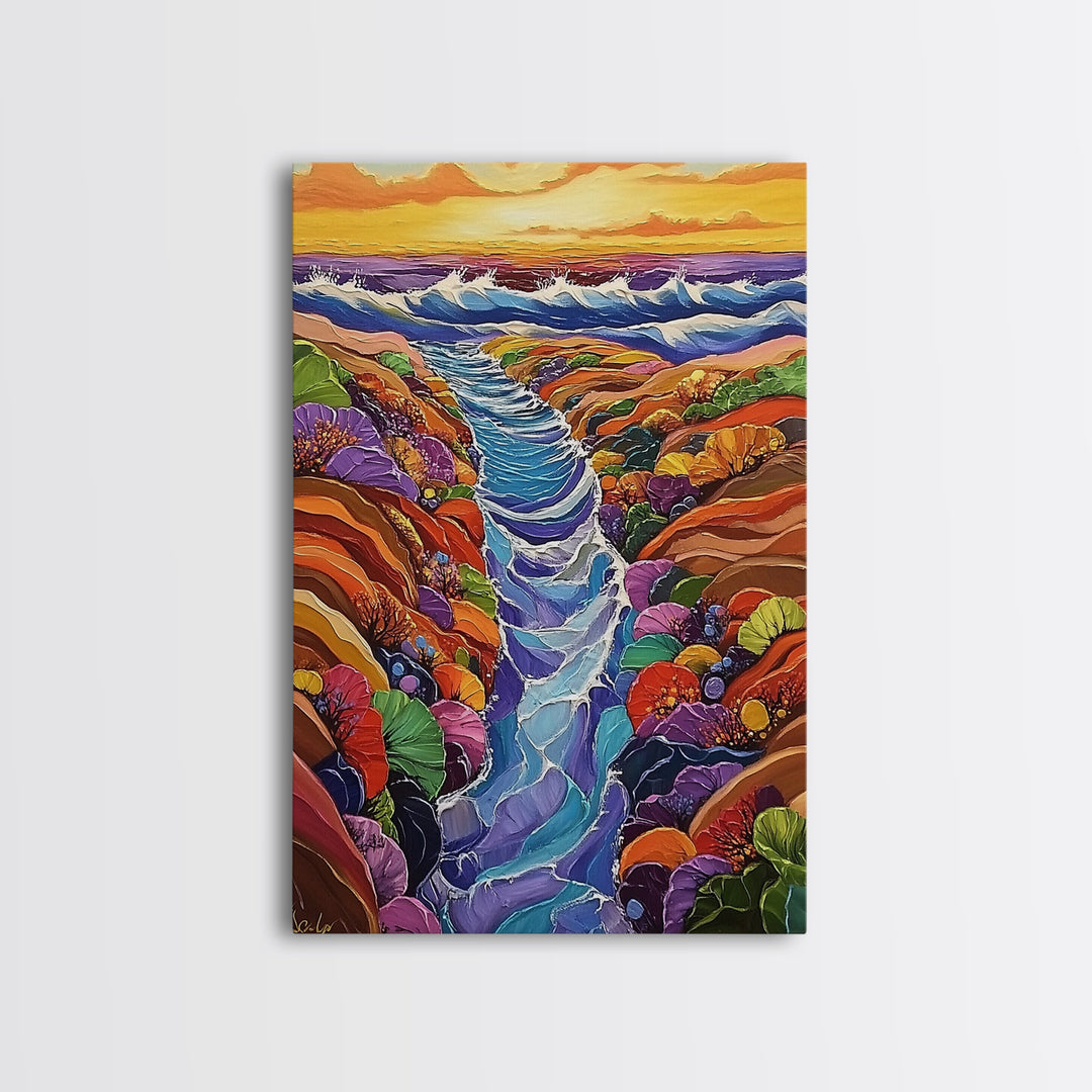 Ocean Tidepool, Rainbow, Shoreline, Canvas Print vivid shoreline tidepool painting, colorful abstract coastal artwork, ocean bathroom wall art