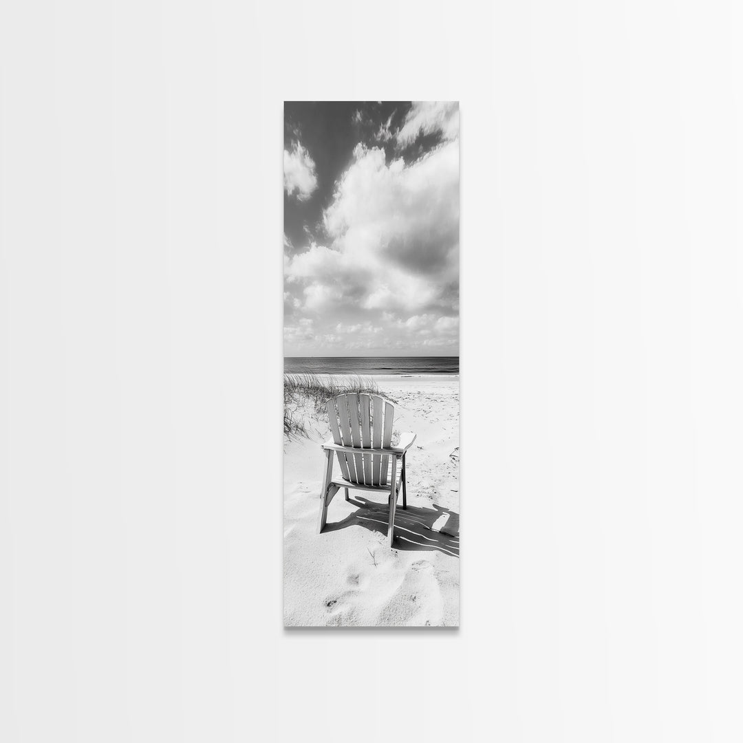 Ocean View Chair, Sandy Dunes, Seaside Retreat, Minimalist Beach, Calm Vibes, Framed Canvas Print, Bedroom Wall Art, Coastal Cottage Style