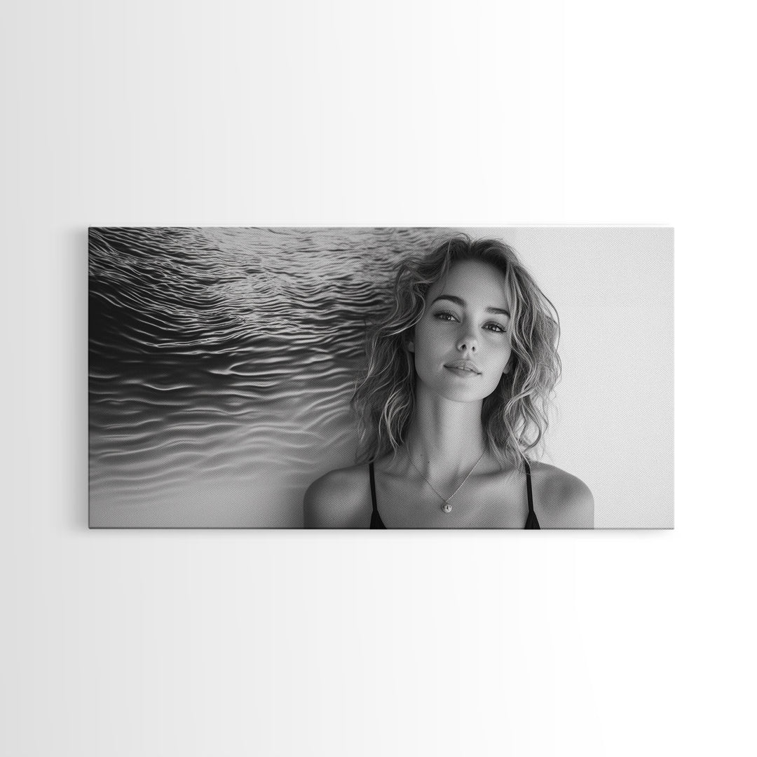 Ocean Texture, Abstract Waves, Modern Female, Artistic Portrait, Canvas Print, fashion wall art, glam room decor, minimal black white