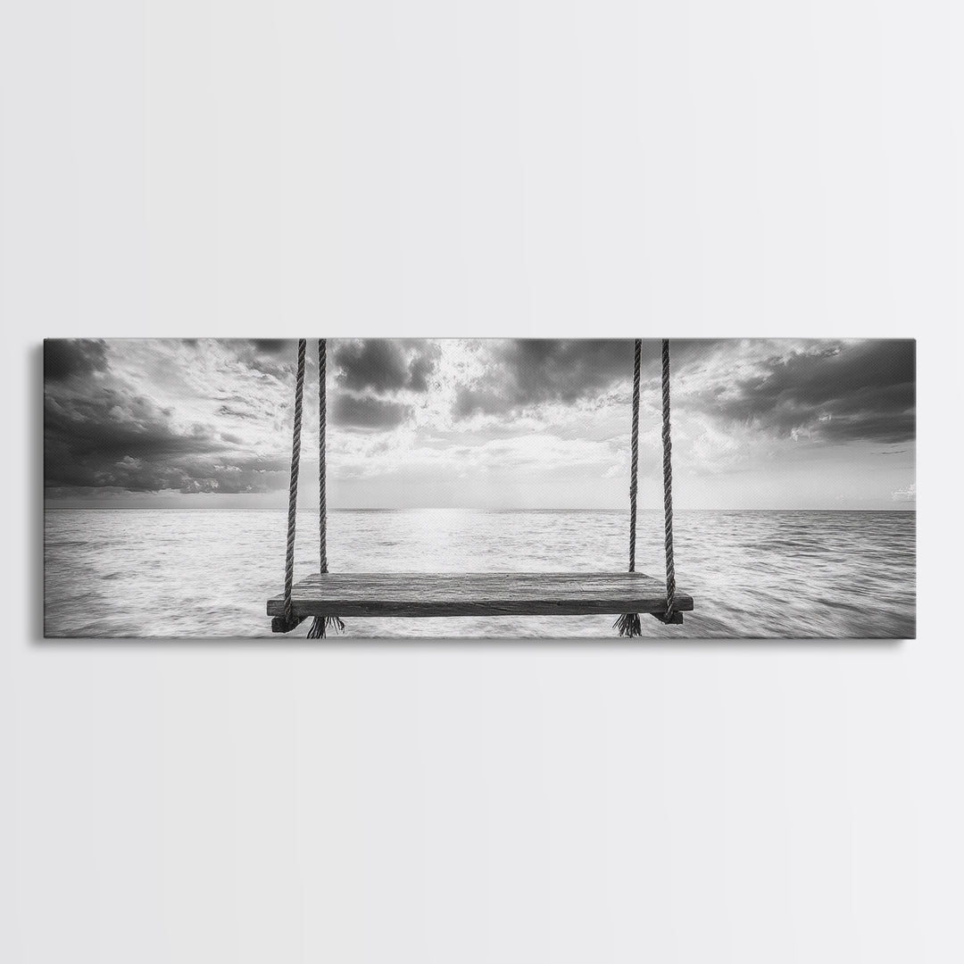 Ocean Swing View, Serene Seascape Art, Minimalist Beach Wall Decor, Framed Canvas Print, Bedroom Art, Calm Coastal Photography