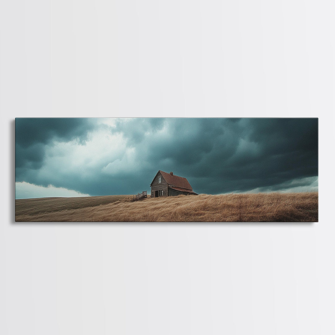 Rustic Barn Wall Art, Panoramic Farmhouse, Farmhouse Wall Decor, Old Barn Painting Canvas Print, Wood Background Rustic Wall Decor