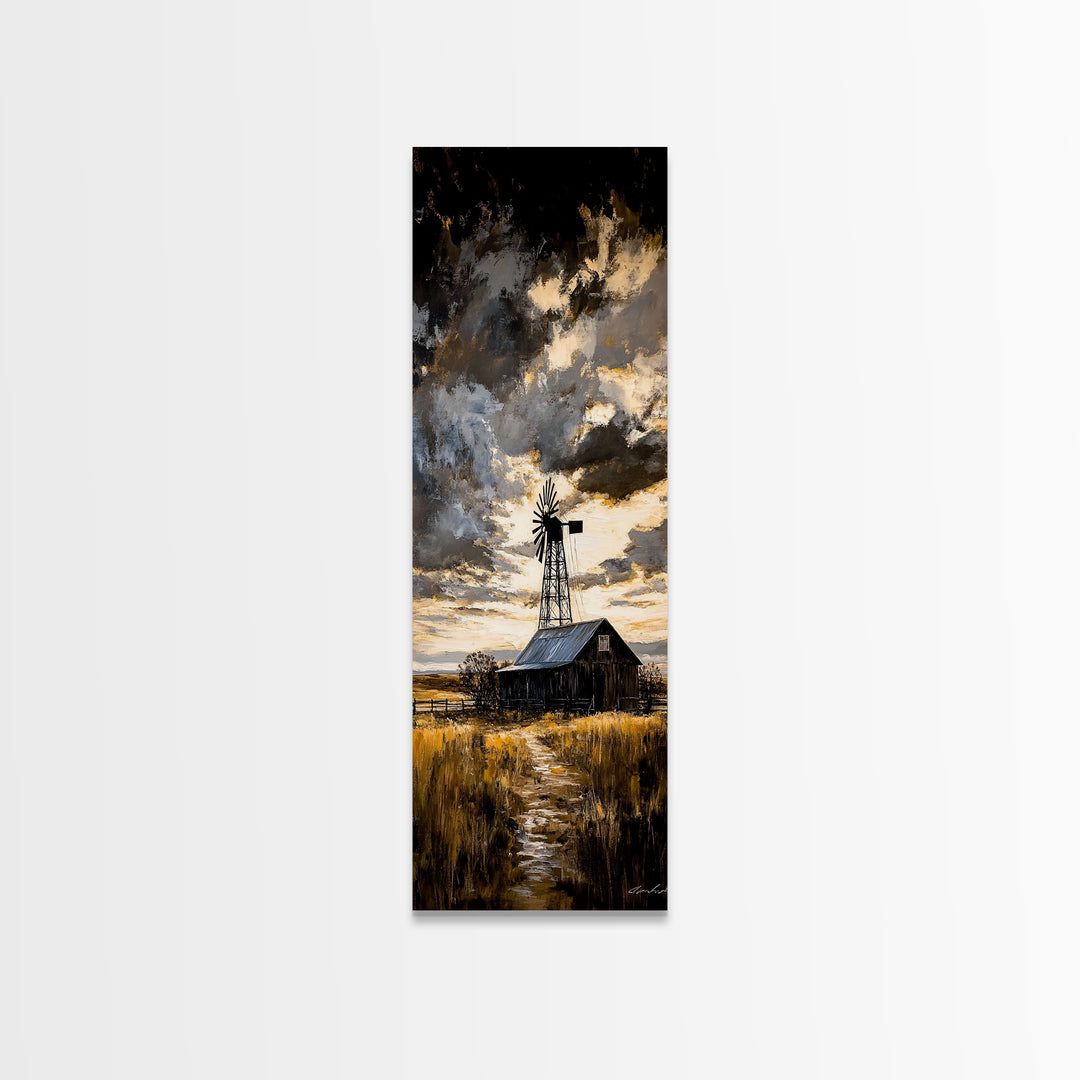 Rustic Barn Landscape Painting, Country Farmhouse Wall Art, Vintage Windmill Art, Autumn Home Decor, Warm Rustic Artwork, Canvas Print