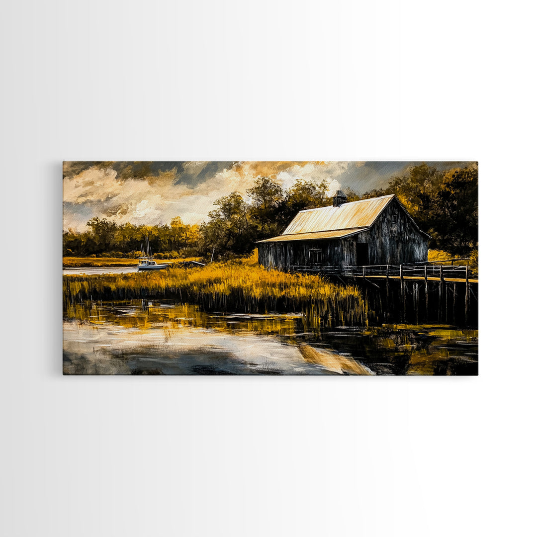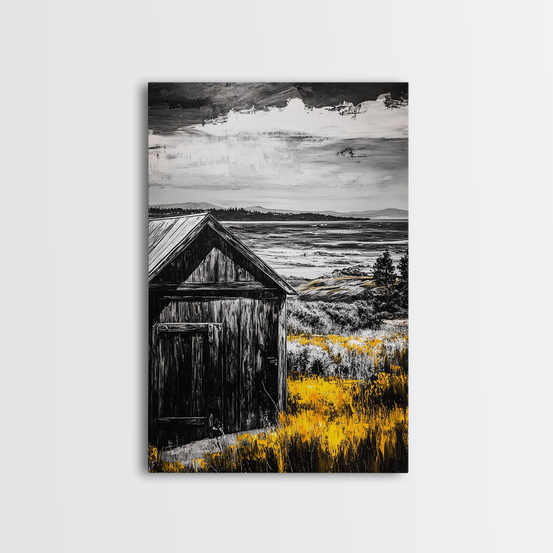 Rustic Barn, Coastal View, Countryside Landscape, Canvas Print, Vintage Farmhouse Decor, Nature Wall Art, Bedroom Accent, Autumn Colors